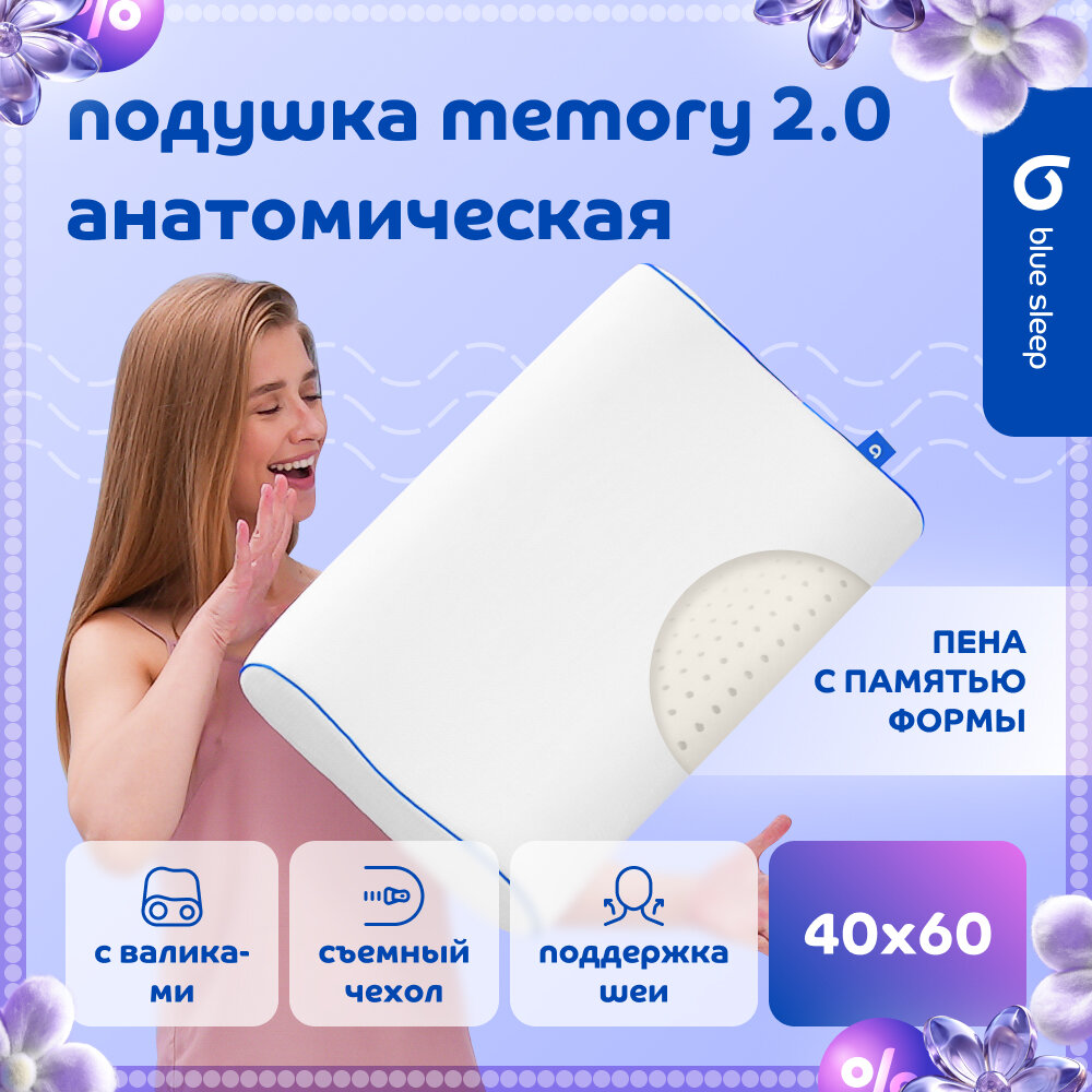 10 цен на Ортопедическая подушка 40х60 для сна с эффектом памяти с валиками Blue Sleep Memory