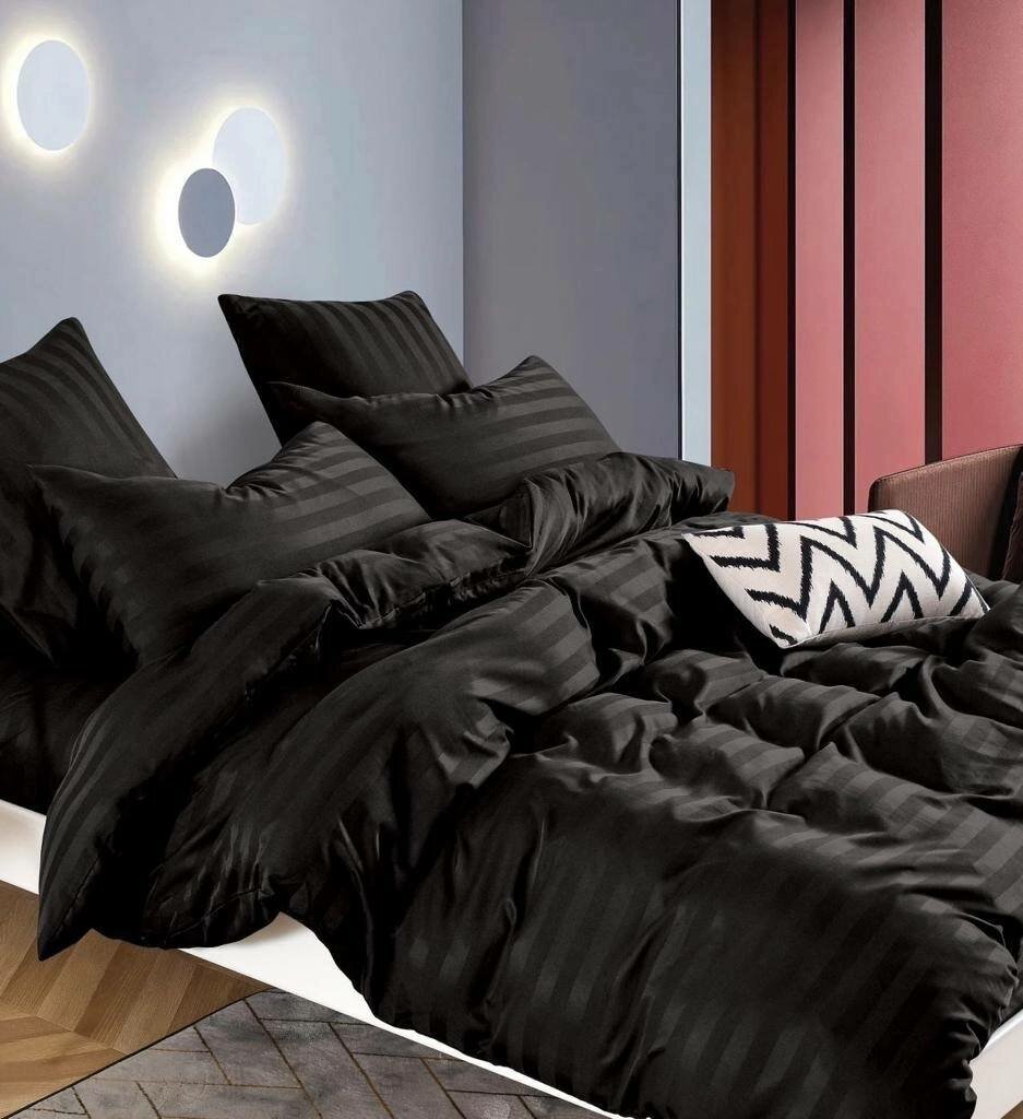 Комплект постельного белья Winni 2 спальный, Страйп-сатин, Черный 3 050 ₽