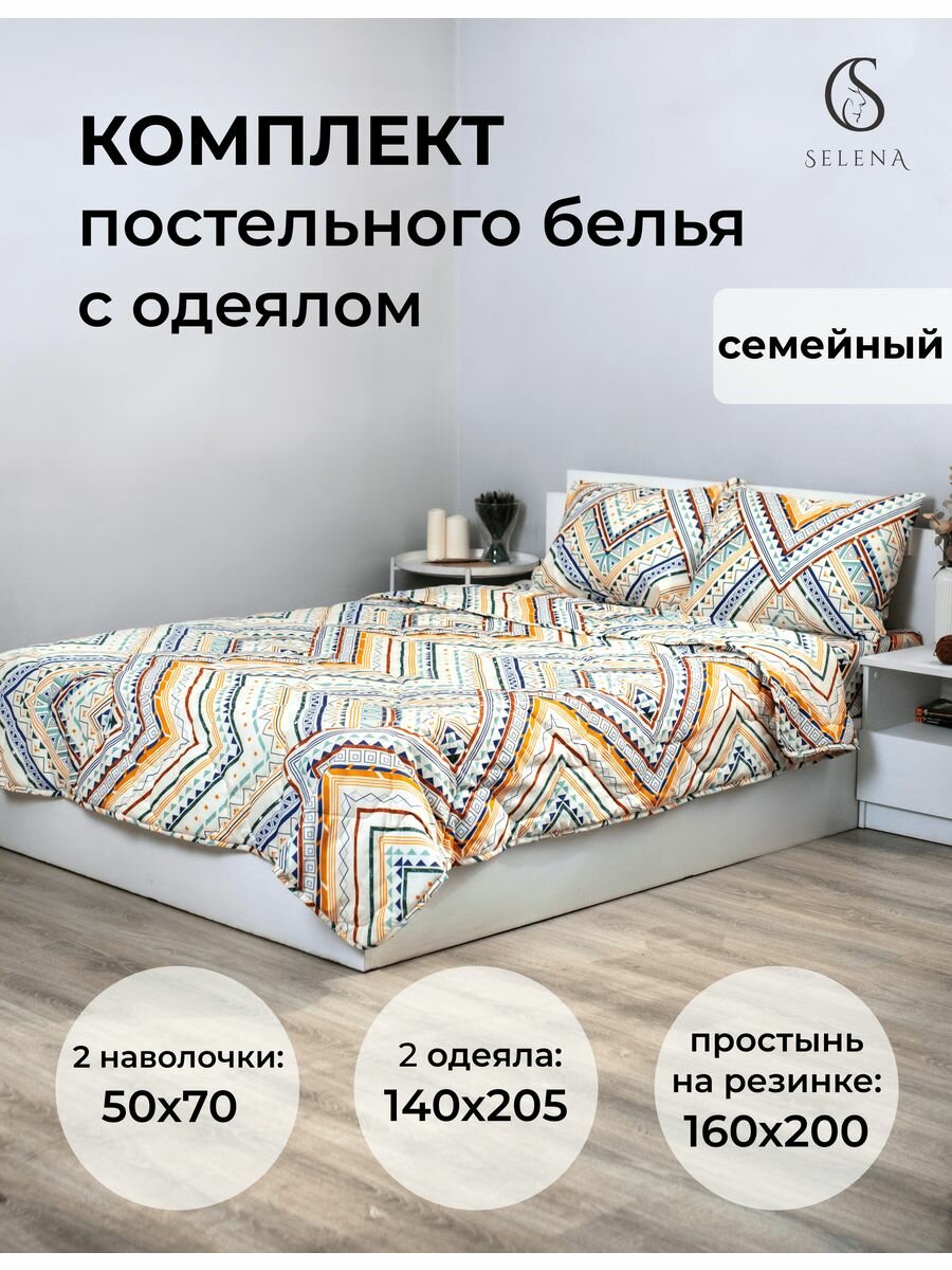 Постельное белье семейное полисатин SELENA Вигвам с двумя одеялами информация: