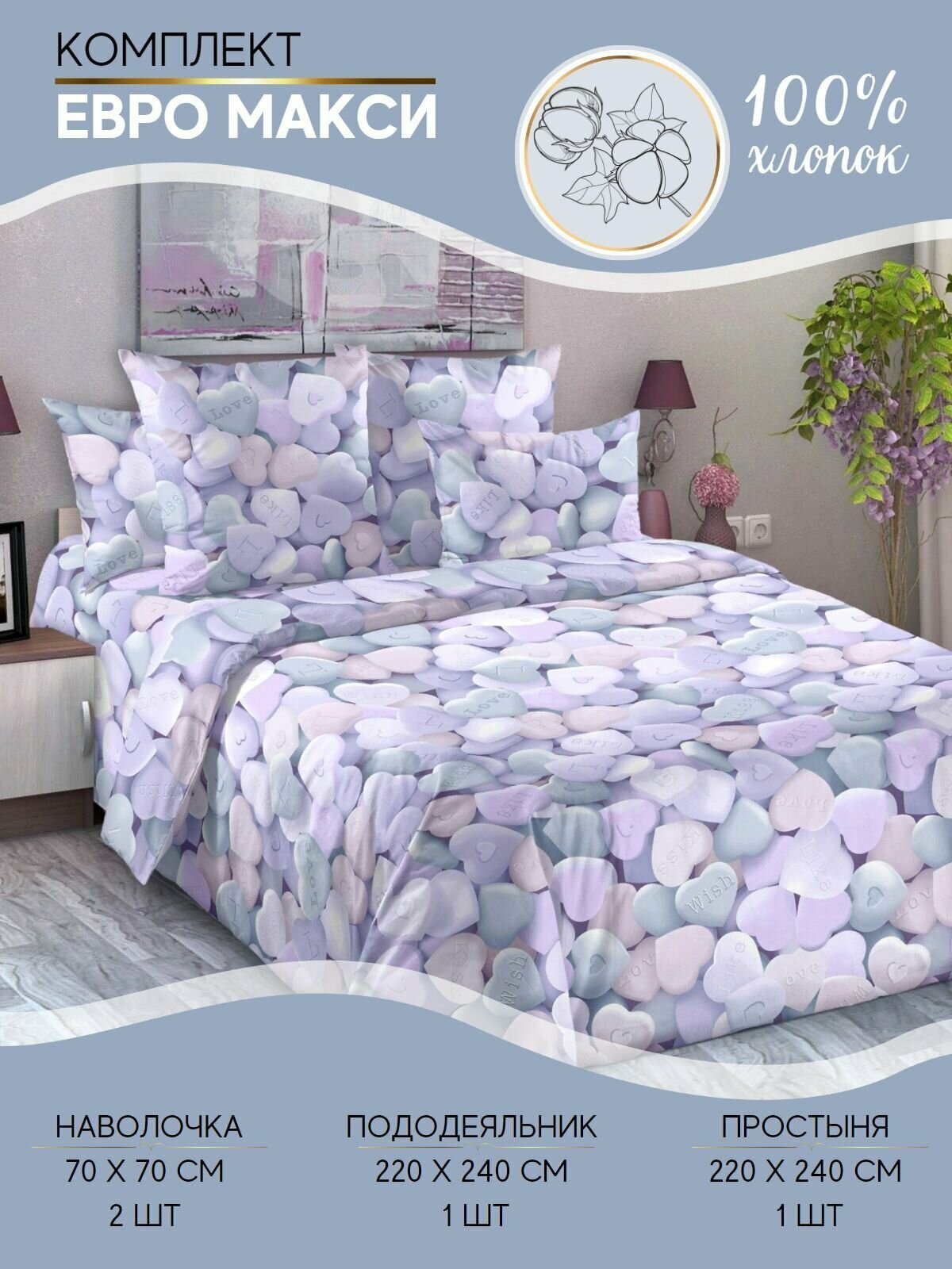 Комплект постельного белья Ночная Серенада "Лайк" Евро Макси, Перкаль, наволочки 70х70 см информация: