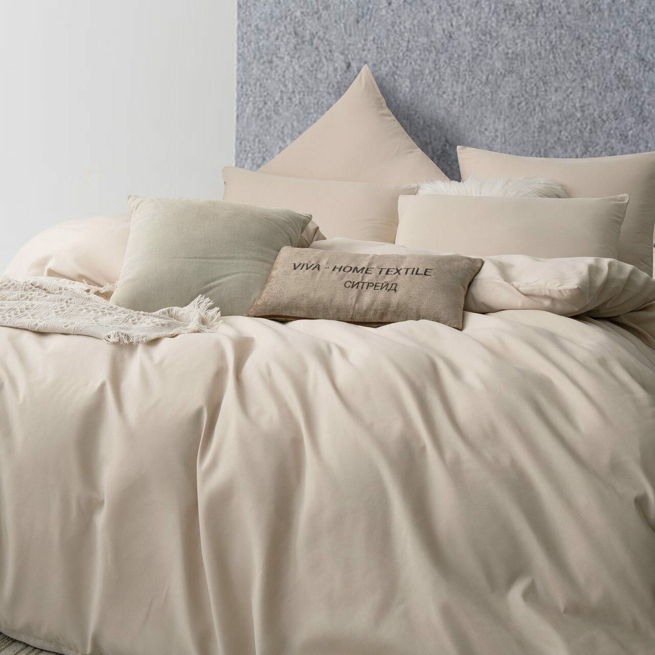 Комплект постельного белья ситрейд Евро кремовый, Сатин, наволочки 50x70, 70x70 по 2 шт.
