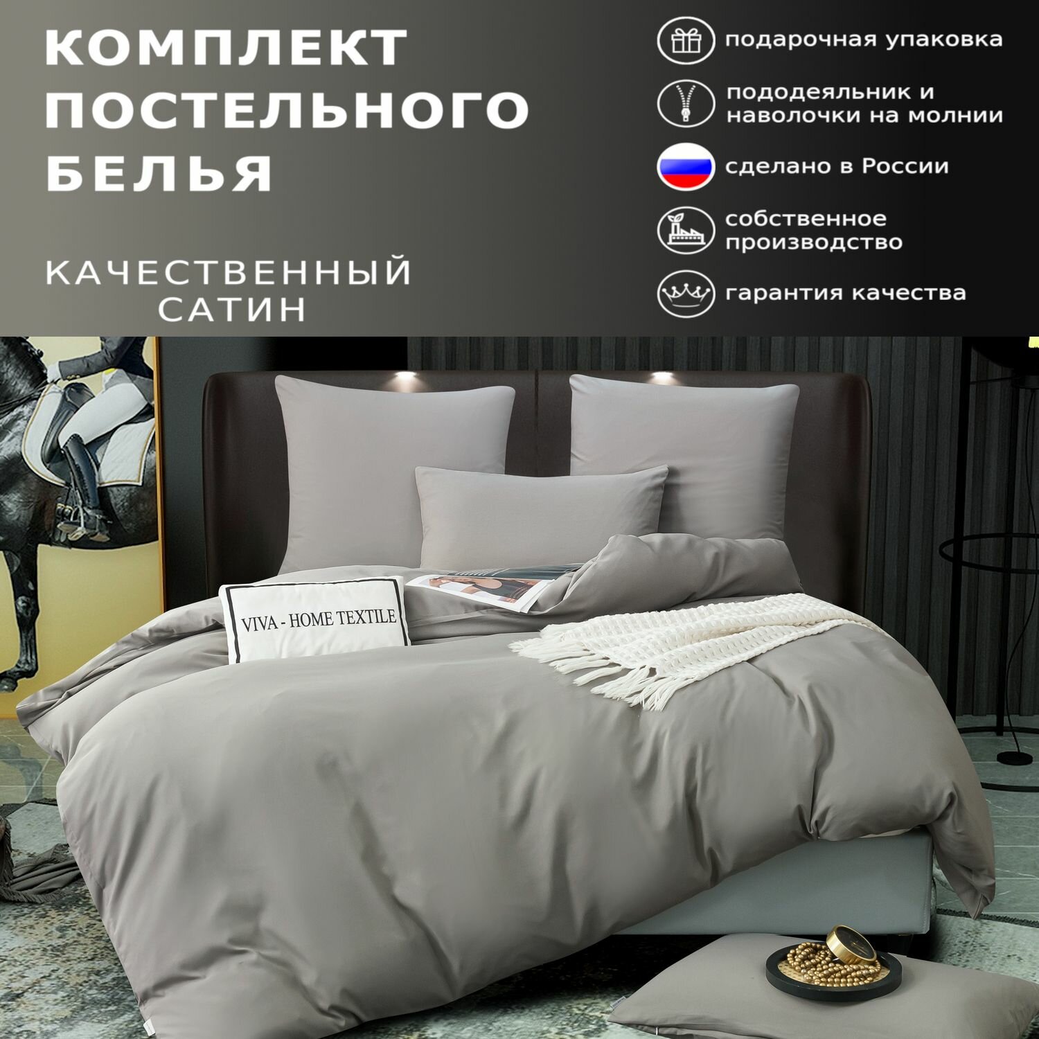 Комплект постельного белья ситрейд 1,5 спальный однотонный светло-серый, Сатин, наволочки 50x70 2 шт.
