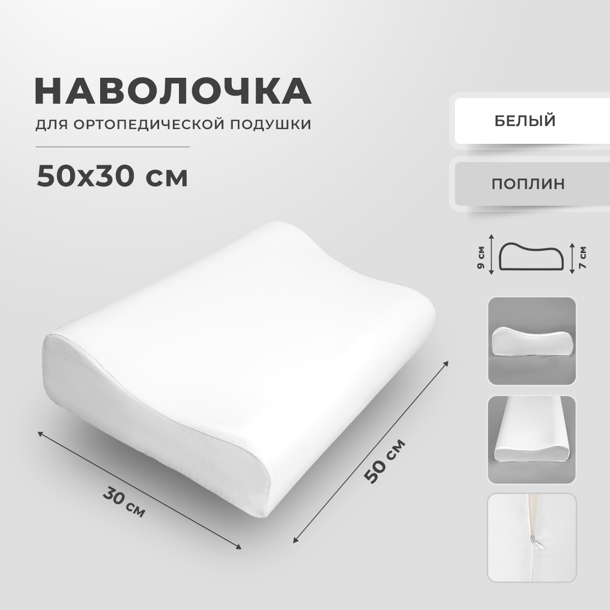 Наволочка для ортопедической подушки 30х50 из поплина белый информация: