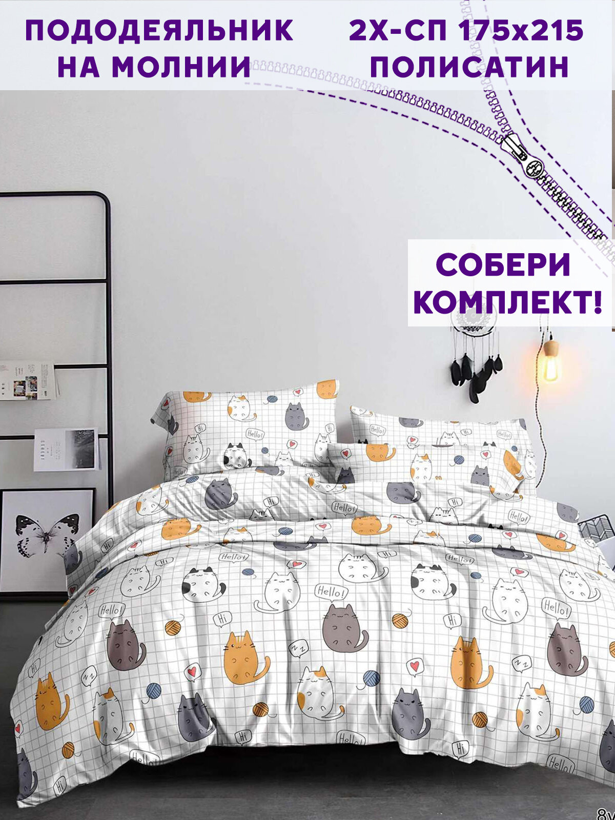Пододеяльник Simple House "Hello, cat!" 2-сп 175х215 см информация:
