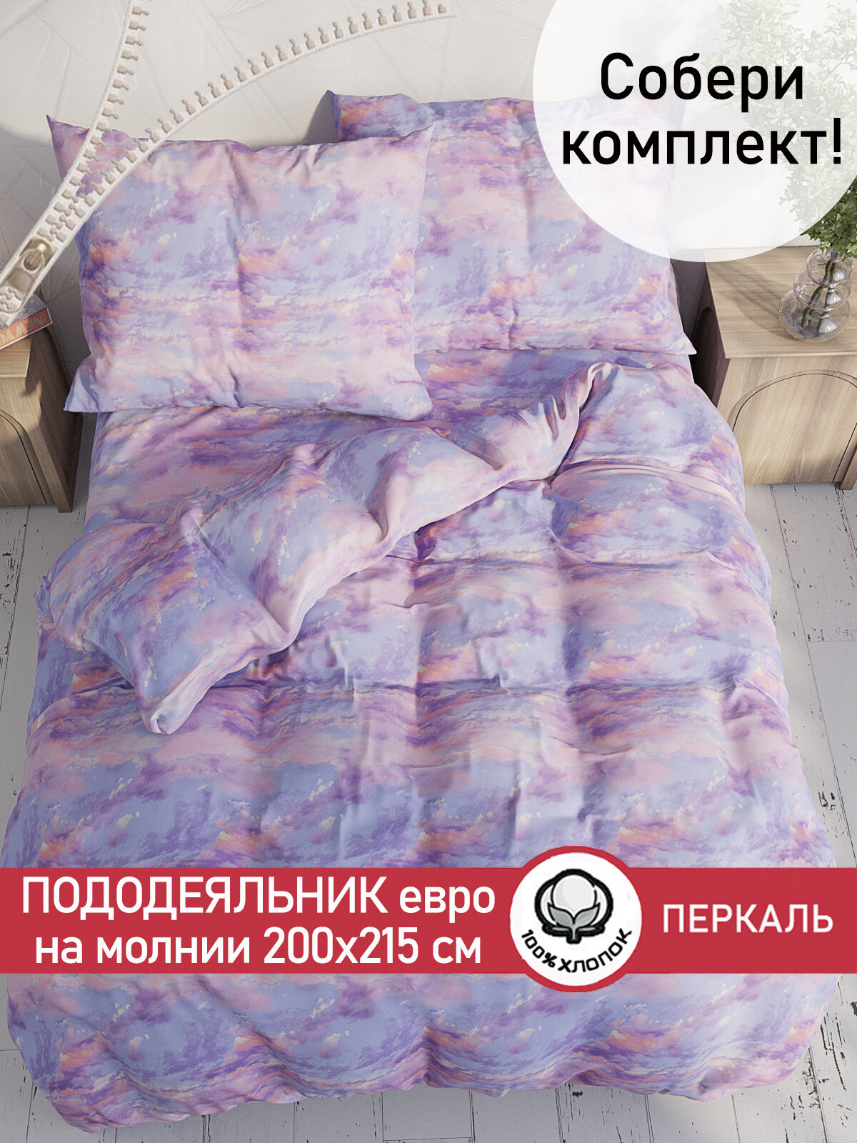 Пододеяльник 200х215 см на молнии, евро, Сказка "Сlouds", ткань перкаль, 100% хлопок