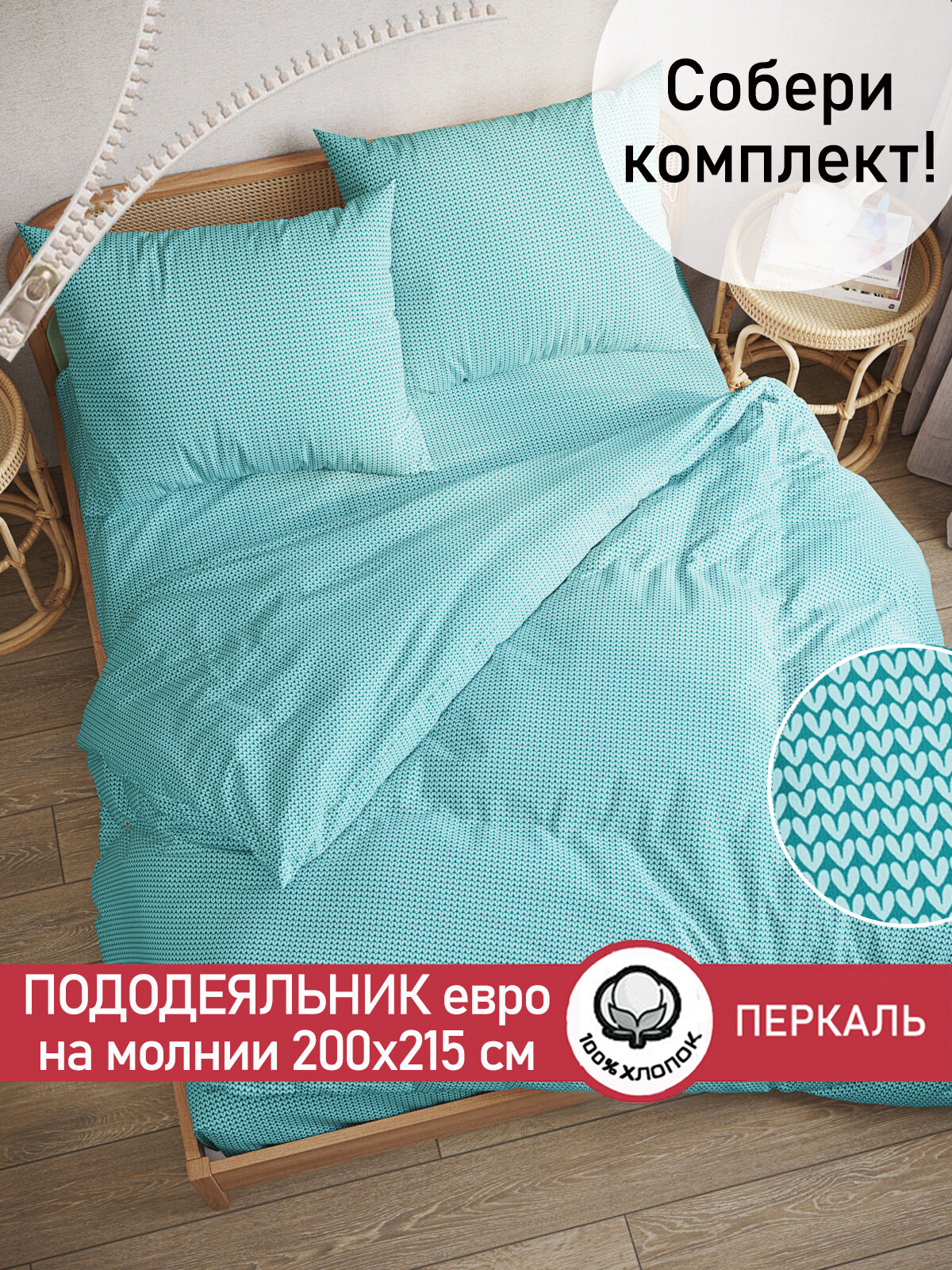 Пододеяльник 200х215 см на молнии, евро, Сказка "Вязание", ткань перкаль, 100% хлопок информация: