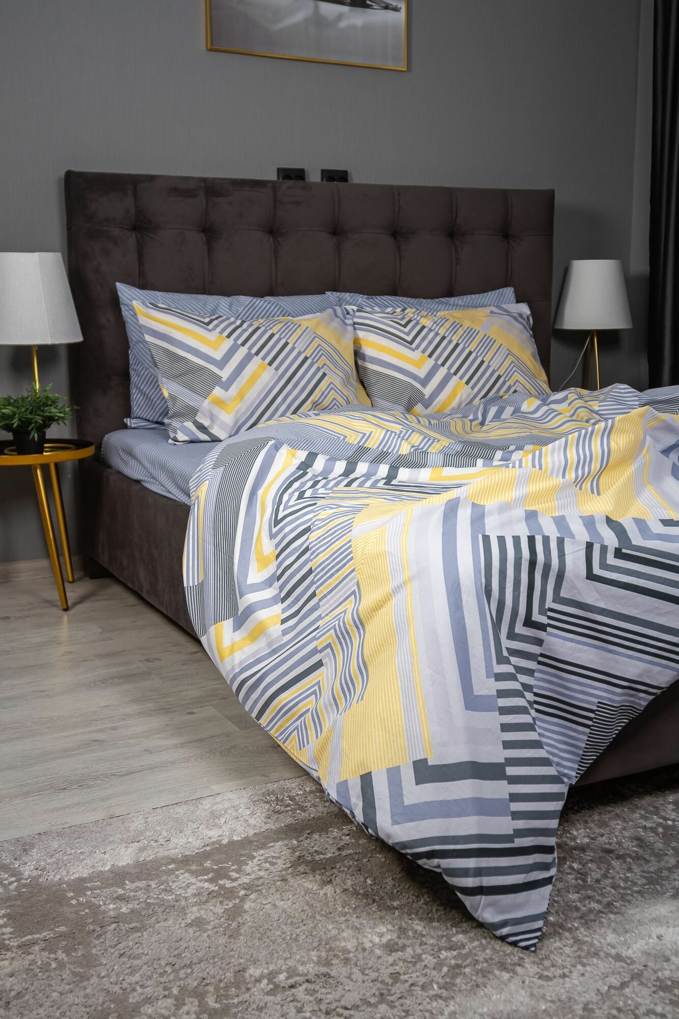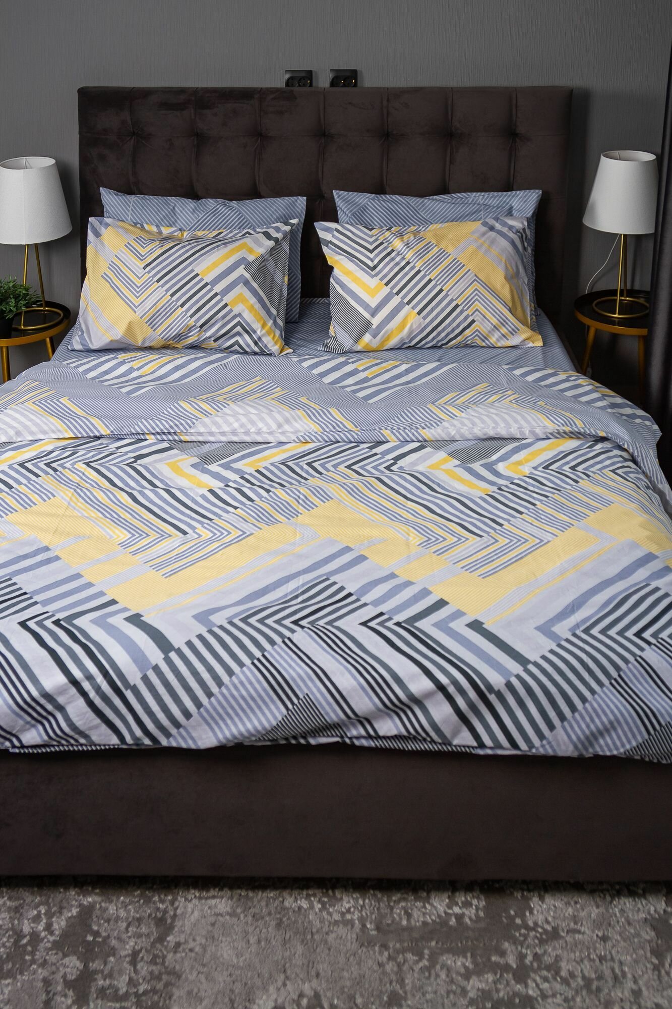 Пододеяльник ILEA Хэзтфипла Серый с желтым Перкаль 2-х спальный 200х200 см 2 090 ₽