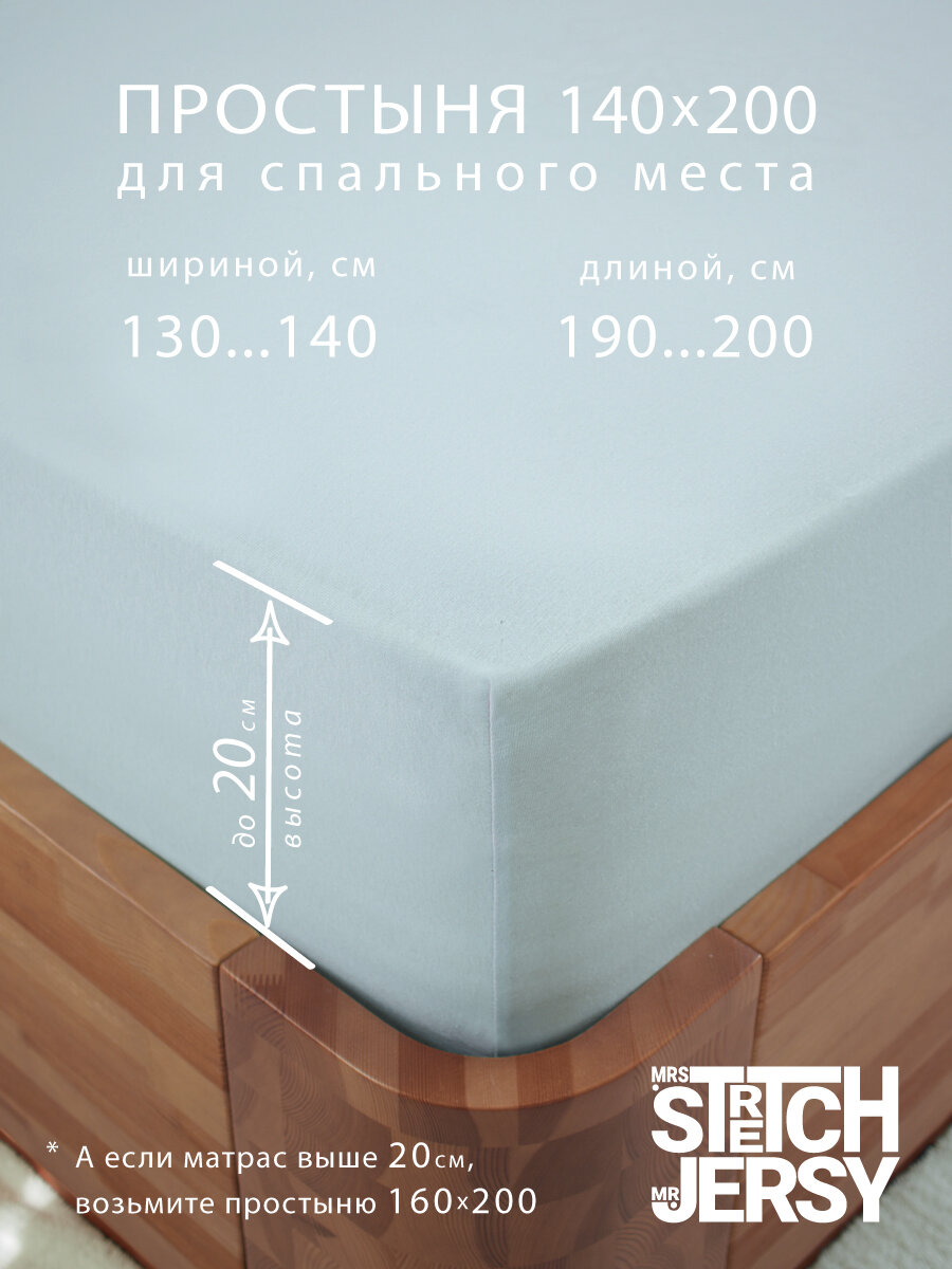 Простыня на резинке натяжная трикотажная Stretch Jersy 140х200 см, цвет небесный информация: