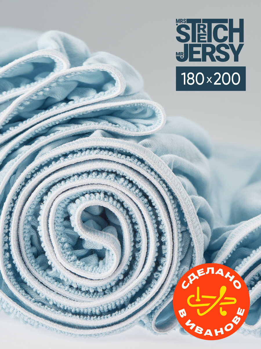 Простыня на резинке натяжная трикотажная Stretch Jersy 180х200 см, цвет небесный информация: