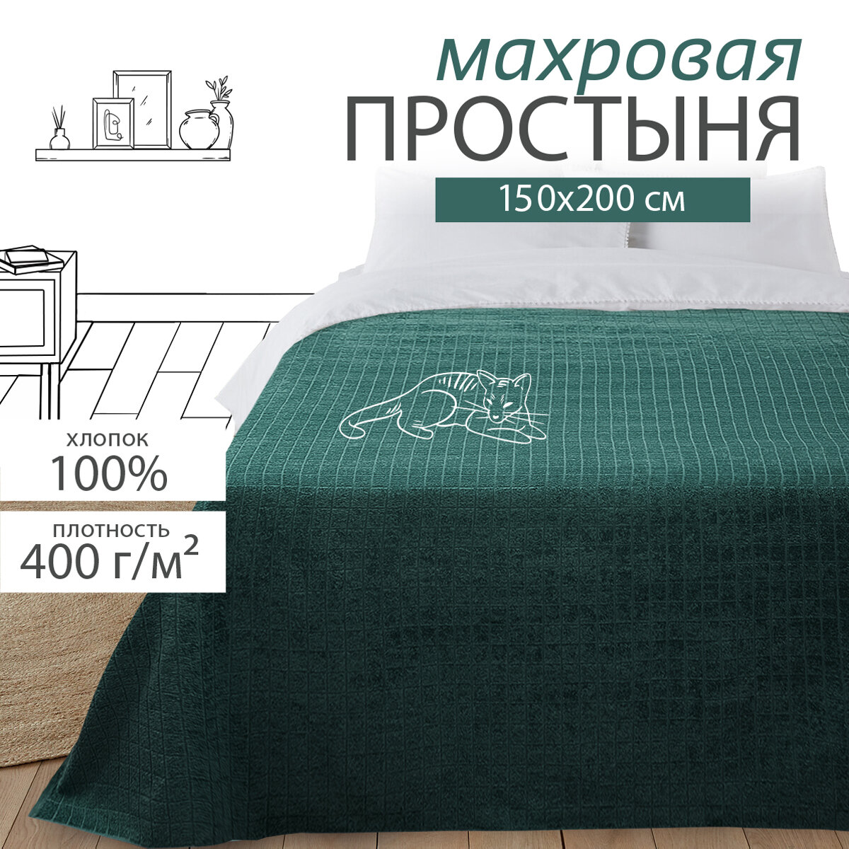 Простыня махровая хлопок полутороспальная 150*200 см Квадро, зеленый, 1,5 спальная информация: