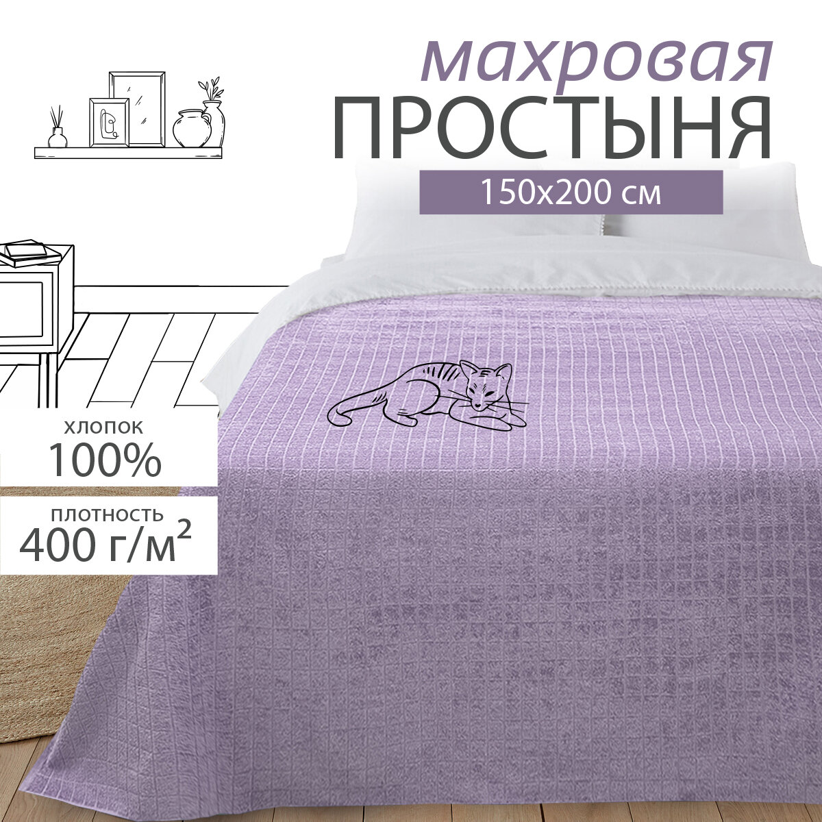 Отзывы на Простыня махровая хлопок 1,5 спальная 150х200 см, Квадро сиреневый, 1,5 спальная
