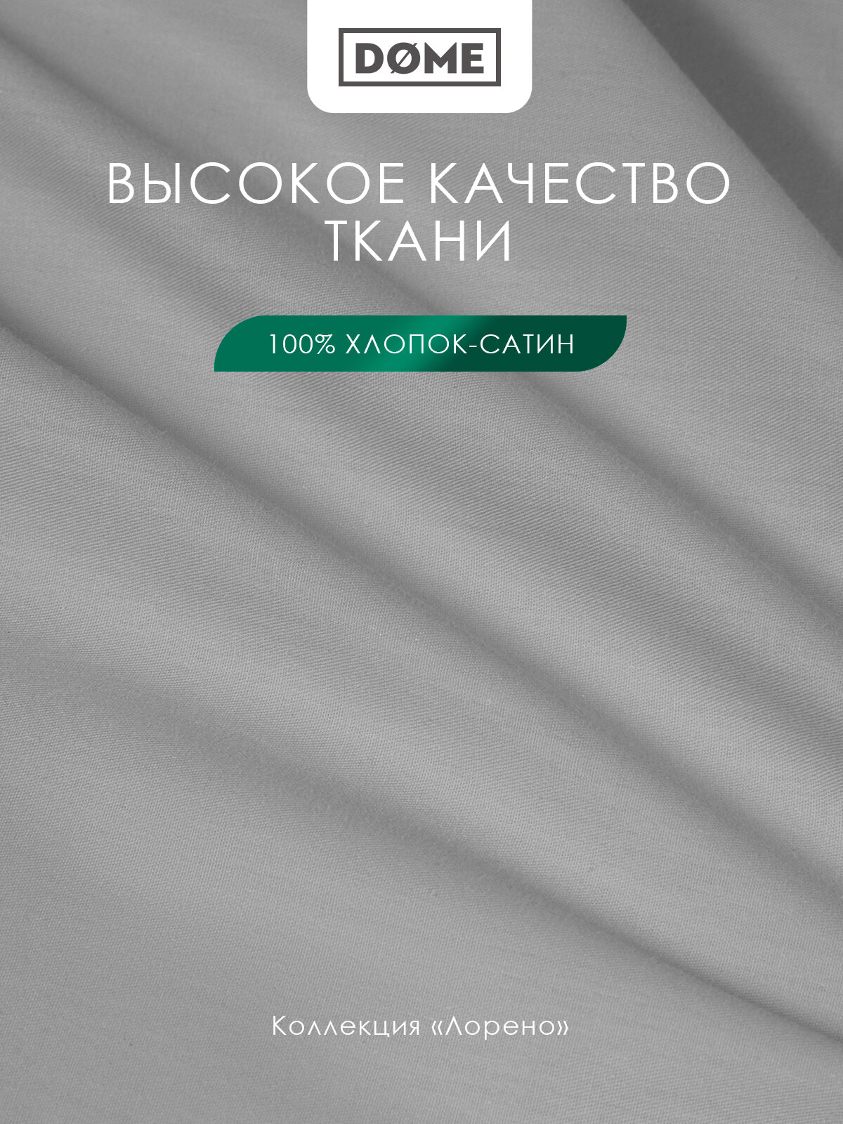 DOME Простыня на резинке полуторная "Лорено" сатин, хлопок, 120x200 +25, серая 1 971 ₽