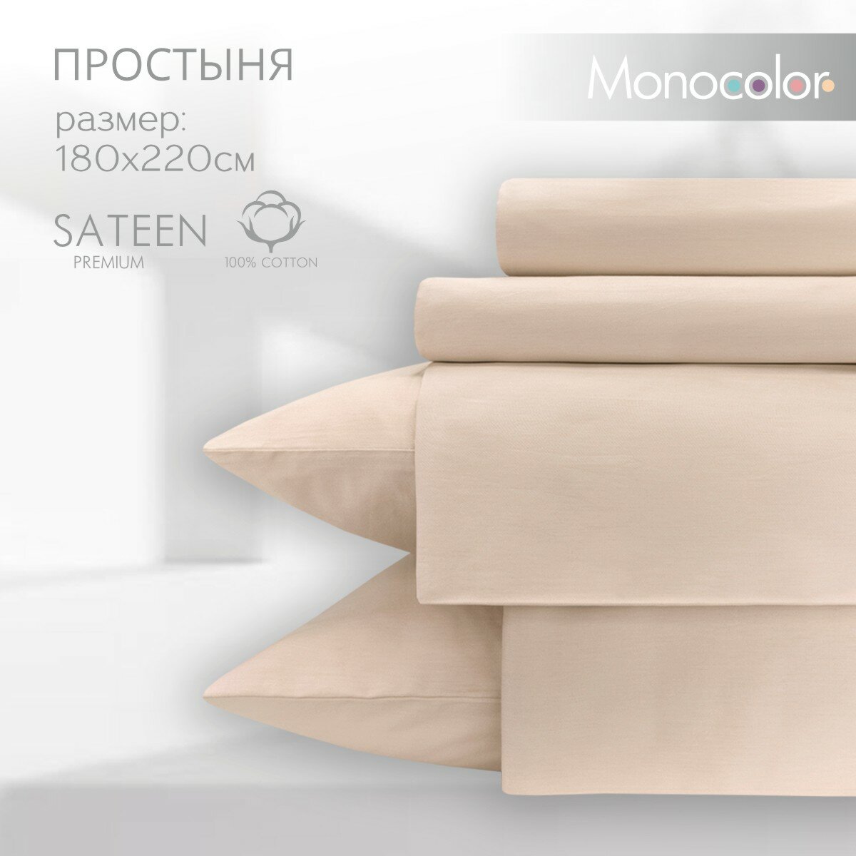 Простыня 2 спальная 180*220 Monocolor сатин хлопок /цвет бежевый информация: