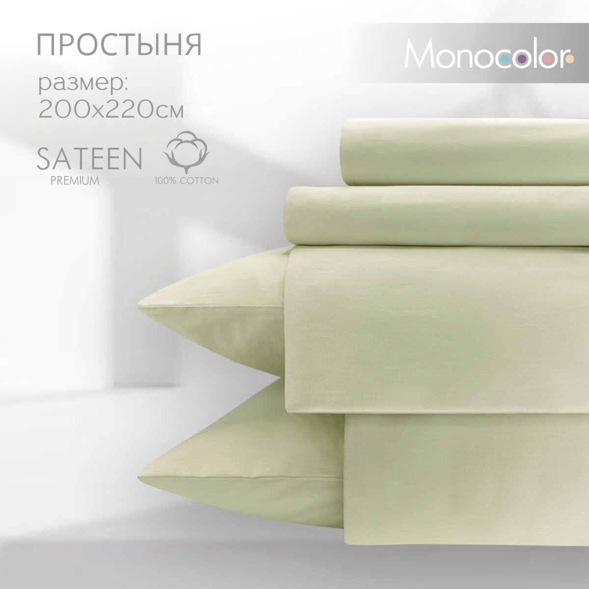 Простыня Евро 200*220 Monocolor сатин хлопок /цвет фисташковый информация: