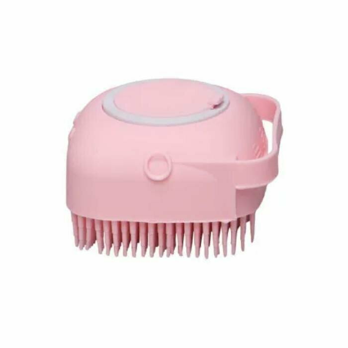 Массажная силиконовая щетка для мытья животных с дозатором для шампуня, розовый информация:
