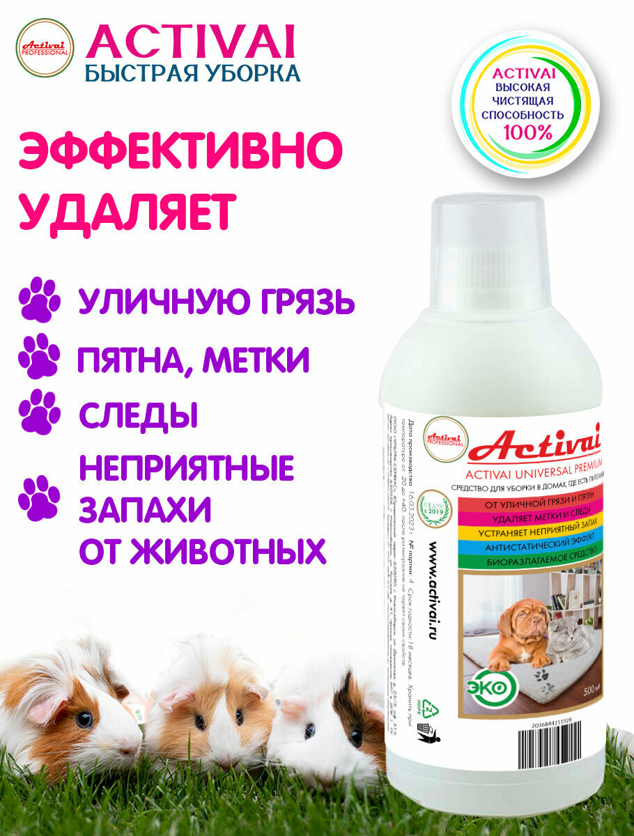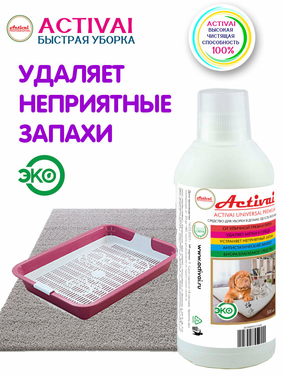 Средство для уборки за животными, Activai PROFESSIONAL, для мытья лотков, нейтрализатор запаха кошачьей мочи, туалет для собак, антигадин для кошек, для чистки ковров, бытовая химия для дома, концентрат 500 мл информация: