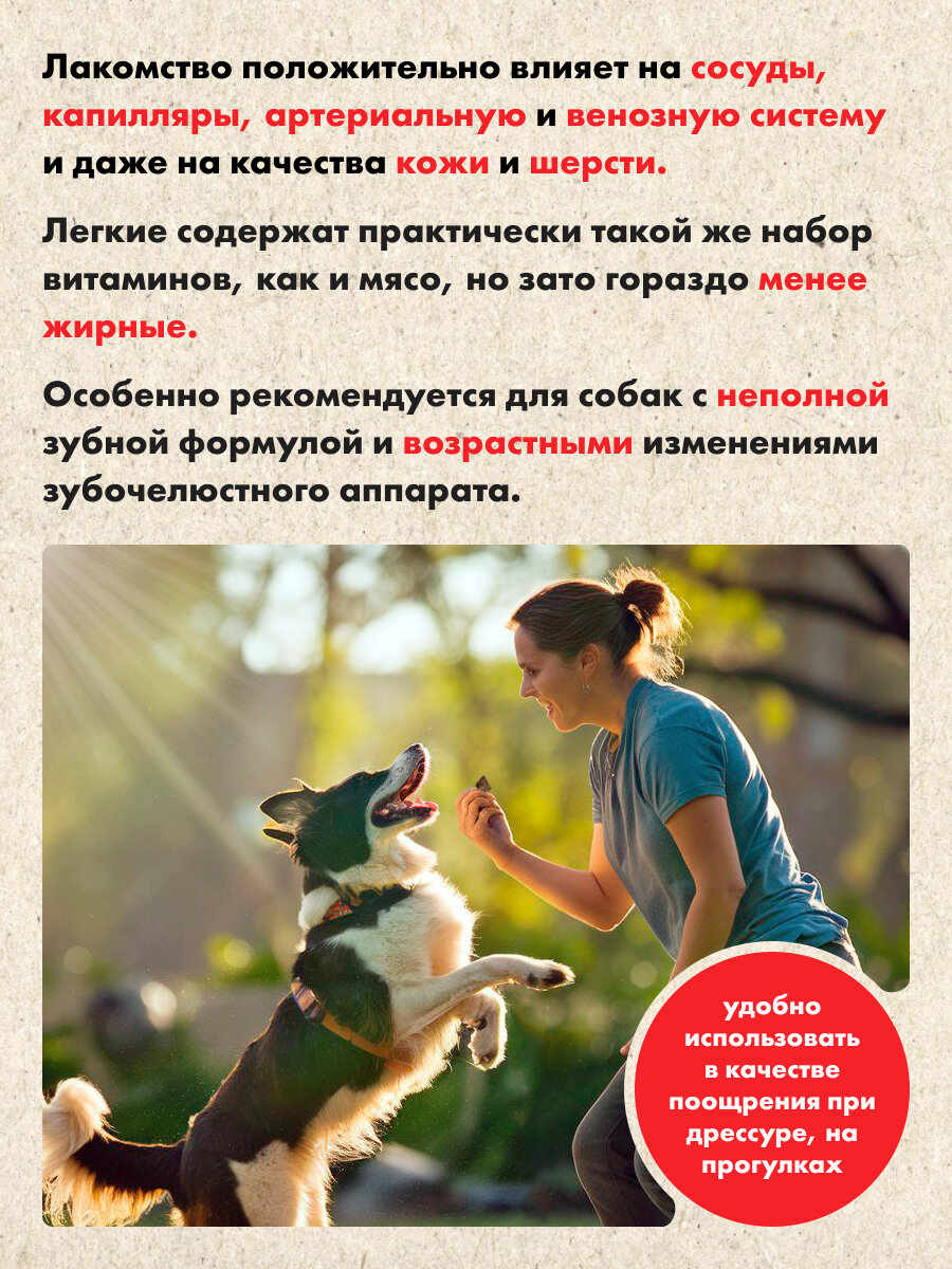Лакомство для собак - Лёгкое говяжье сушеное 2х2 см, 300 гр