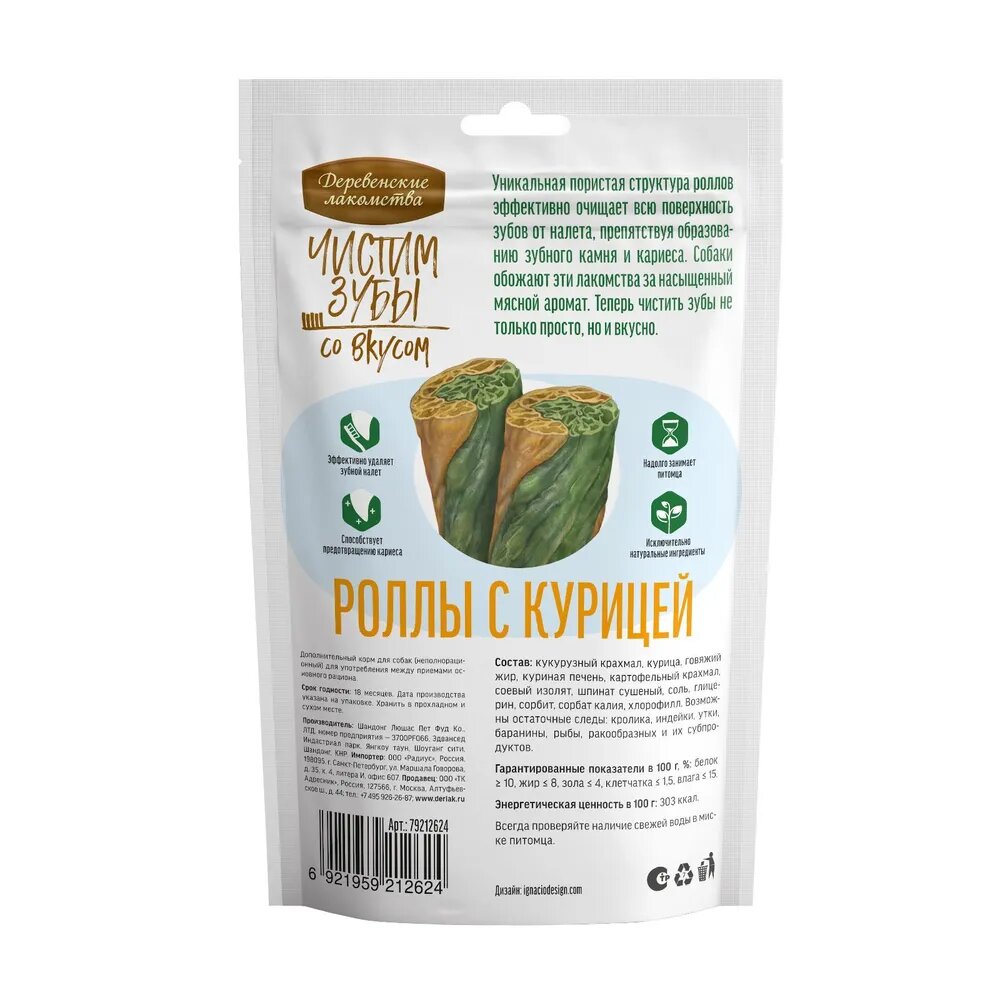 Деревенские лакомства Чистим зубы Роллы с курицей д/собак 100г информация: