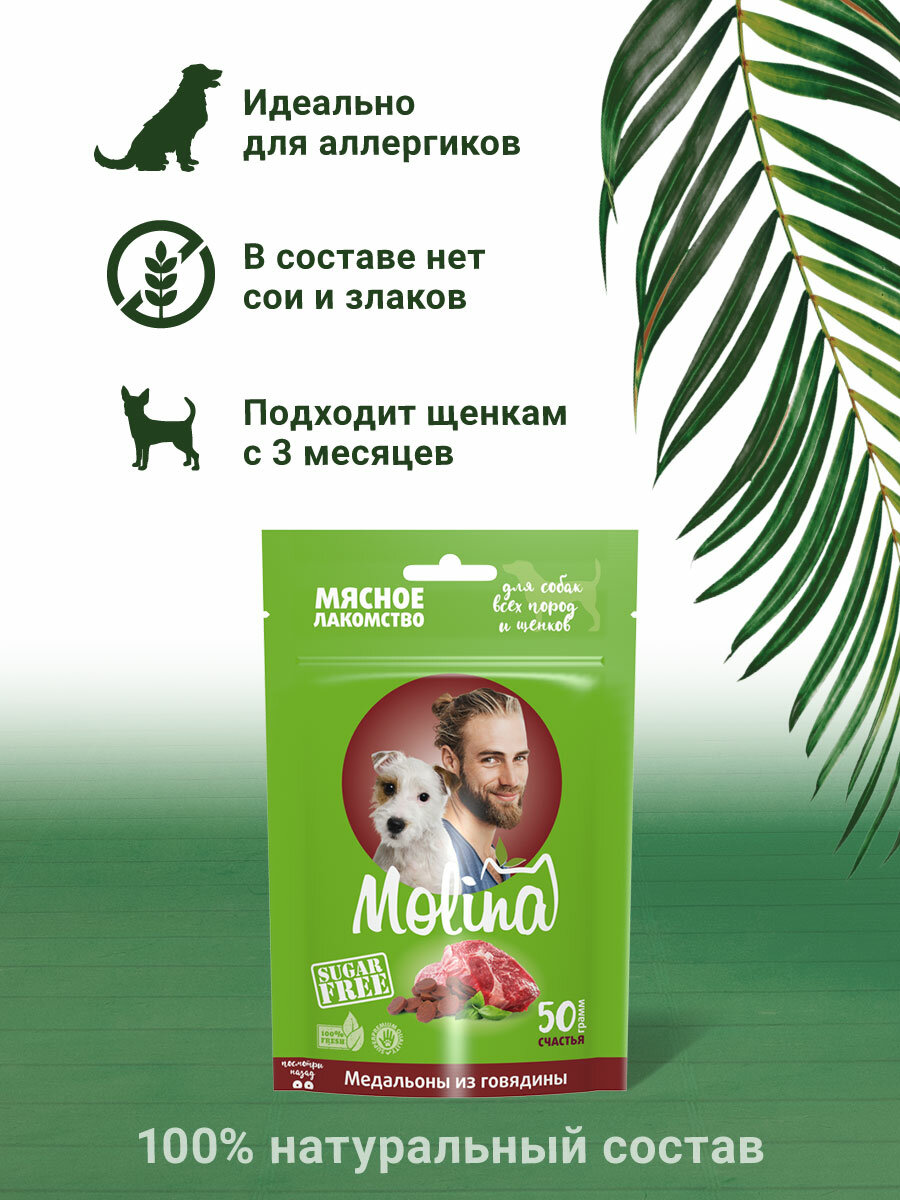 MOLINA, Лакомство для собак всех пород и щенков, Медальоны из говядины, 50 г информация: