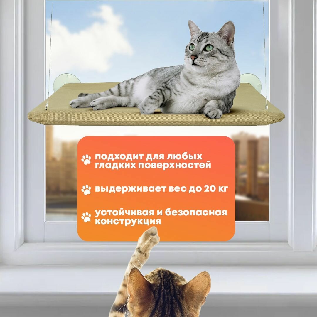 10 цен на Гамак для кошек и котов на окно подвесной до 20 кг / Лежанка полка на присосках