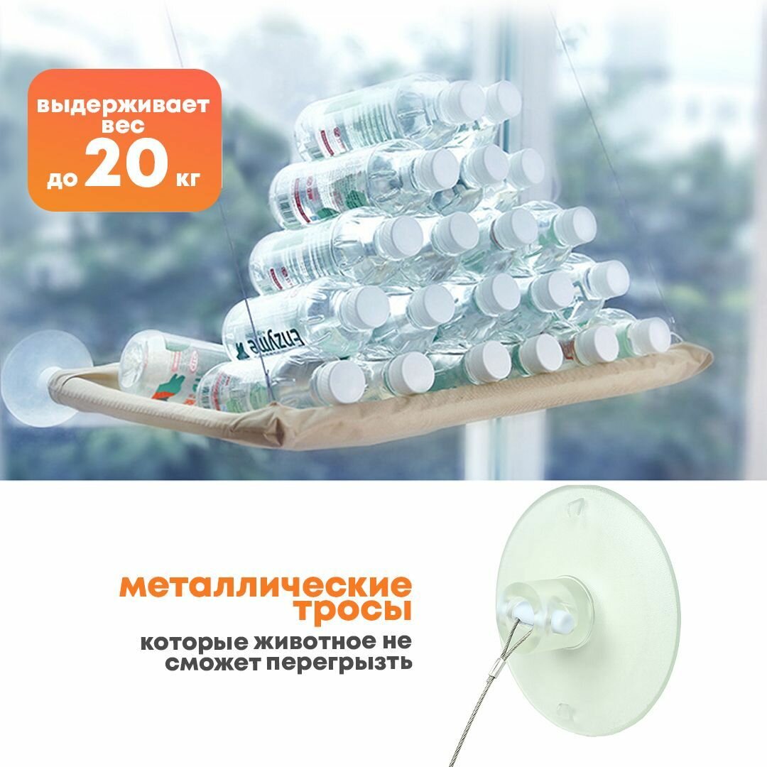 Гамак для кошек и котов на окно подвесной до 20 кг / Лежанка полка на присосках информация: