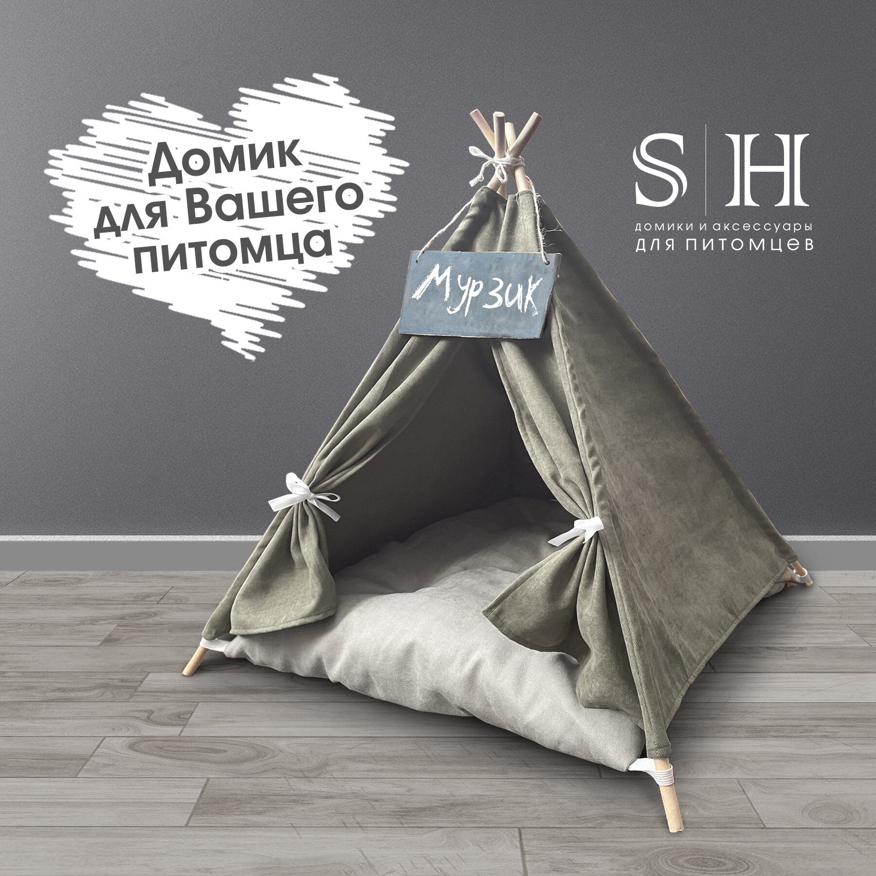 Домик для животных. Вигвам-палатка для кошек и собак с лежанкой хаки 3 339 ₽