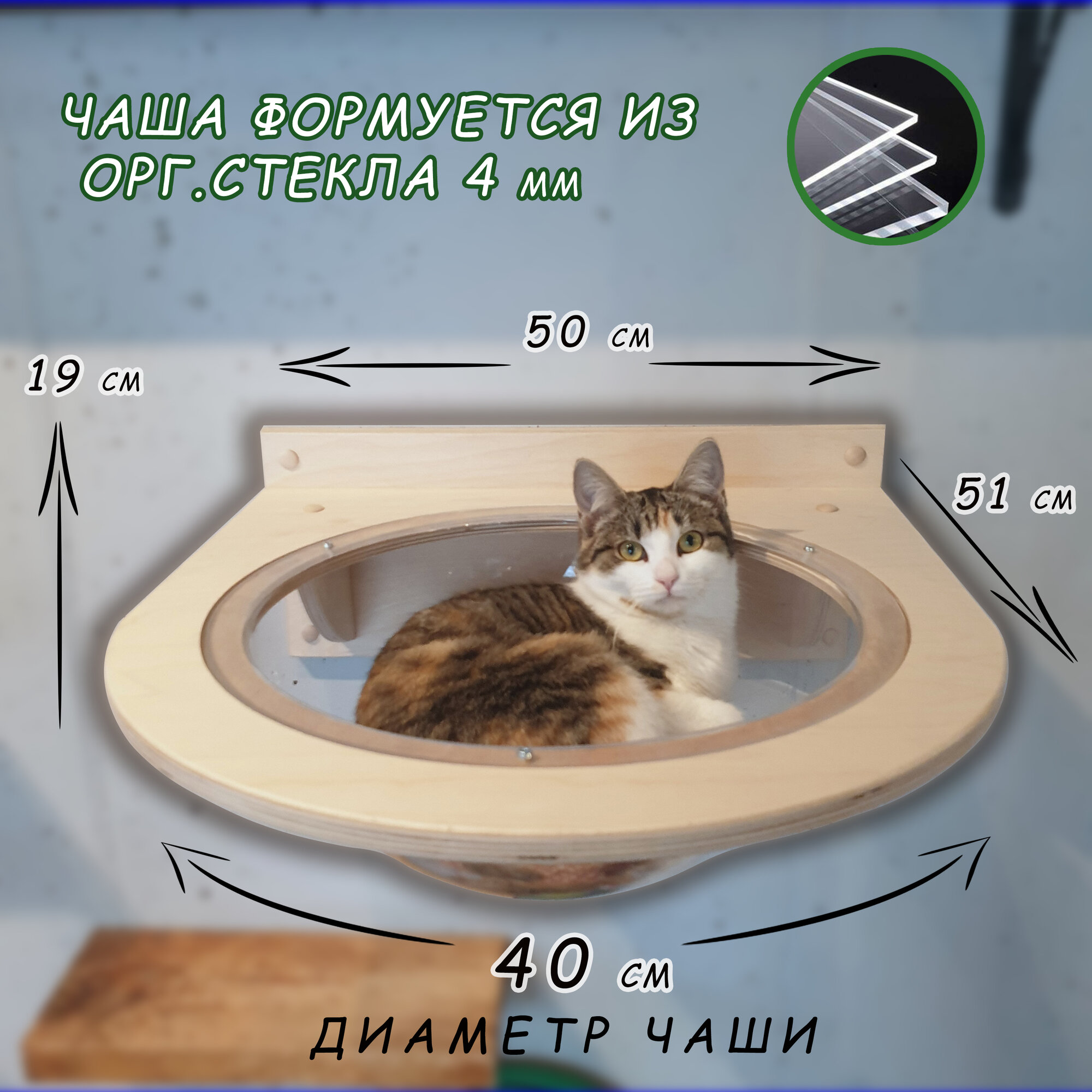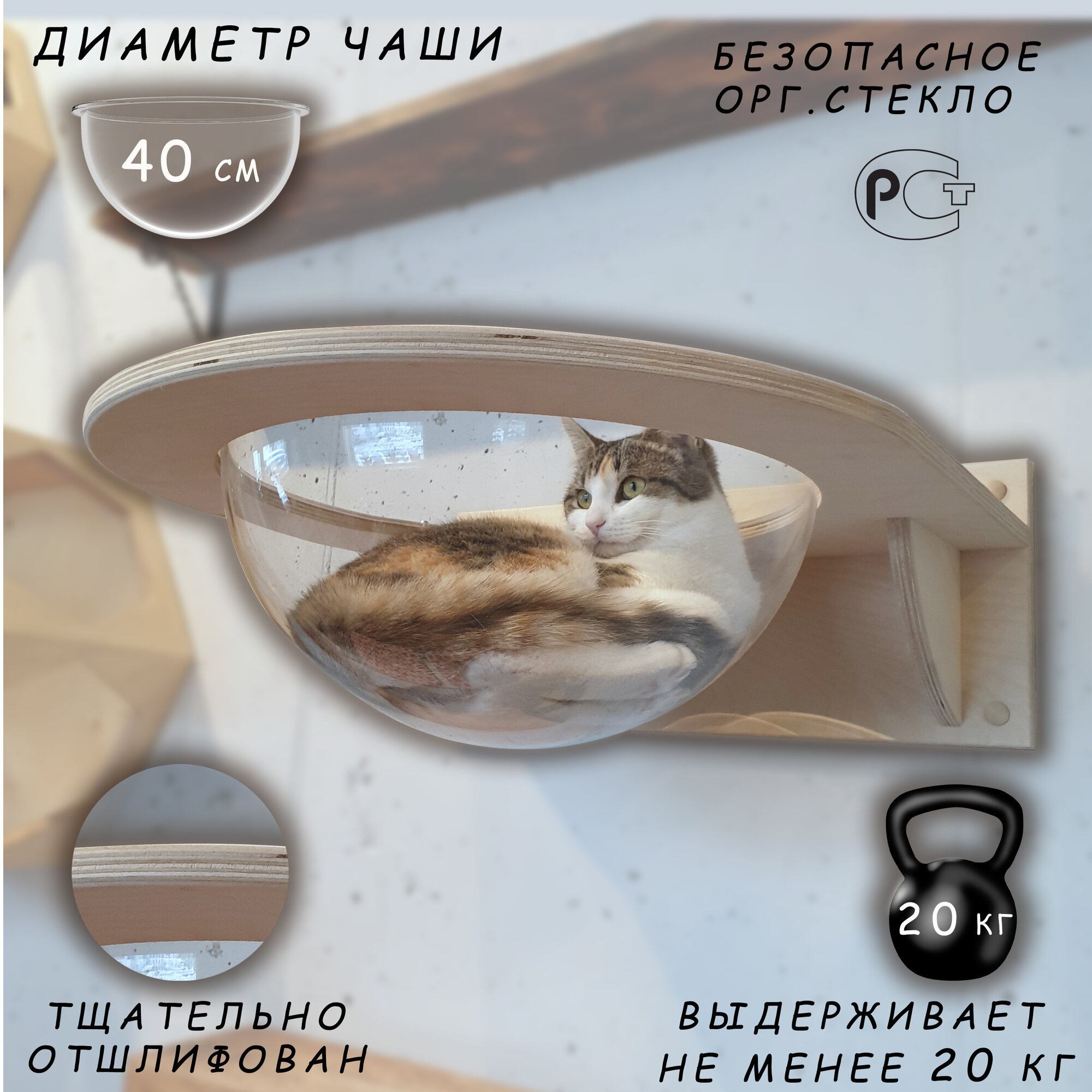 Гамак - лежанка настенный, для кошек, для крупных пород, Sferoff информация: