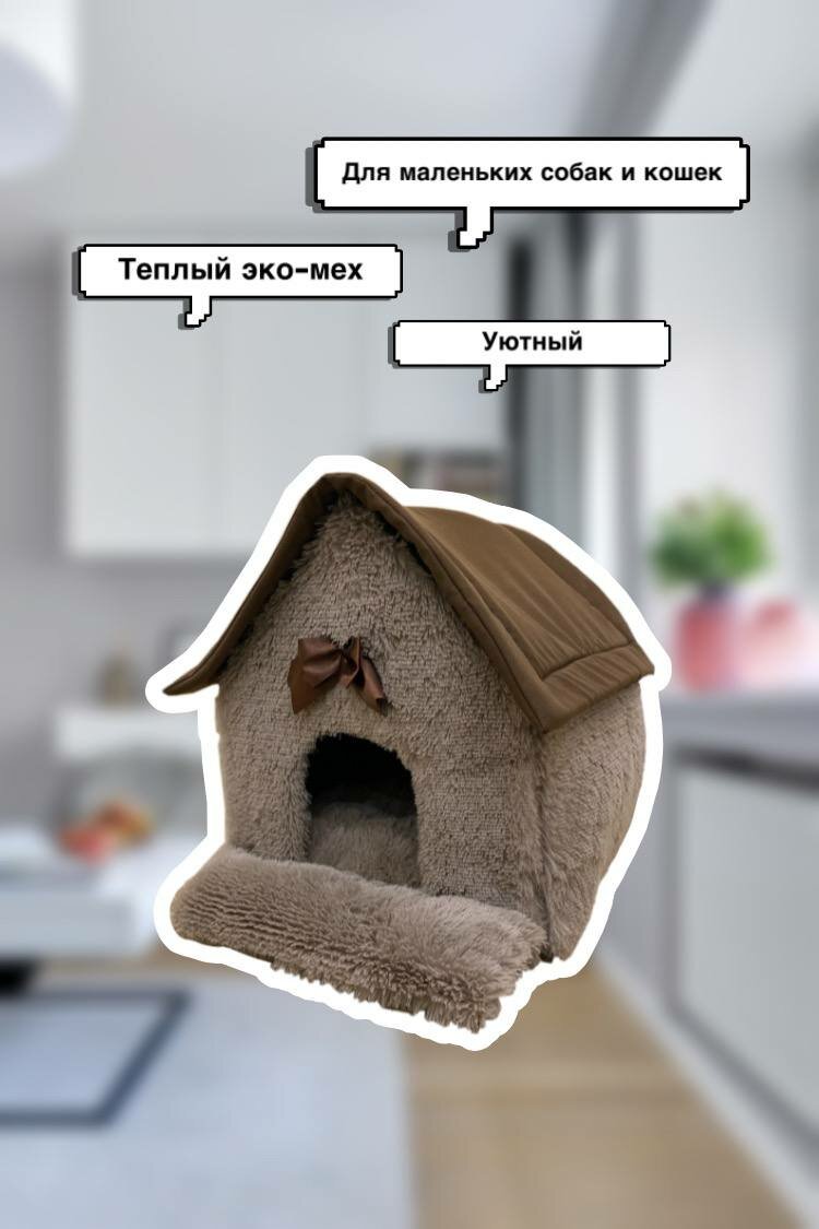 Домик для собак мелких пород и кошек из экомеха со съемной подушкой, 40 х 50, коричневый информация: