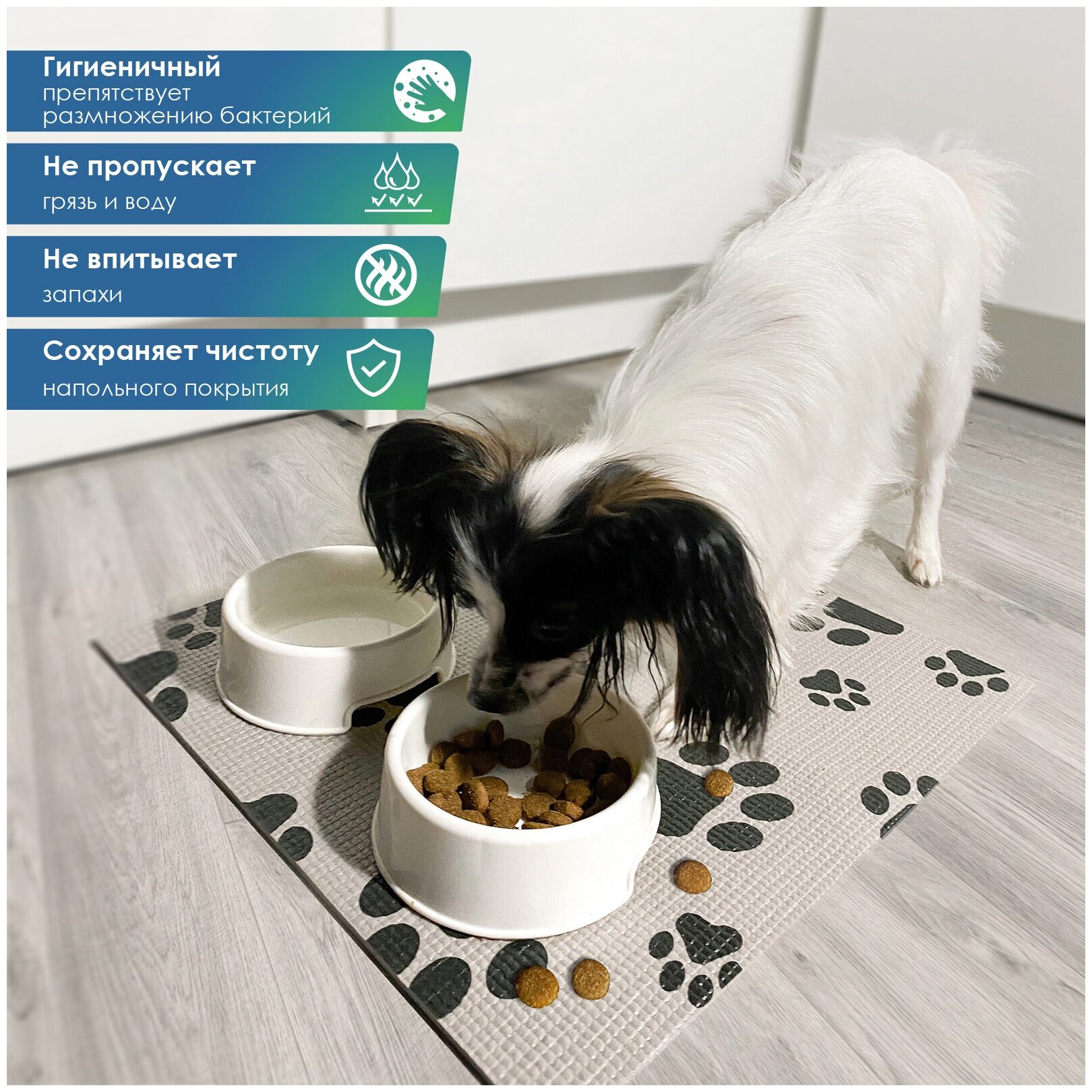 Коврик для животных под миску противоскользящий серый "Зооковрик" / коврик для кошек и собак 50х30см горошек 215 ₽