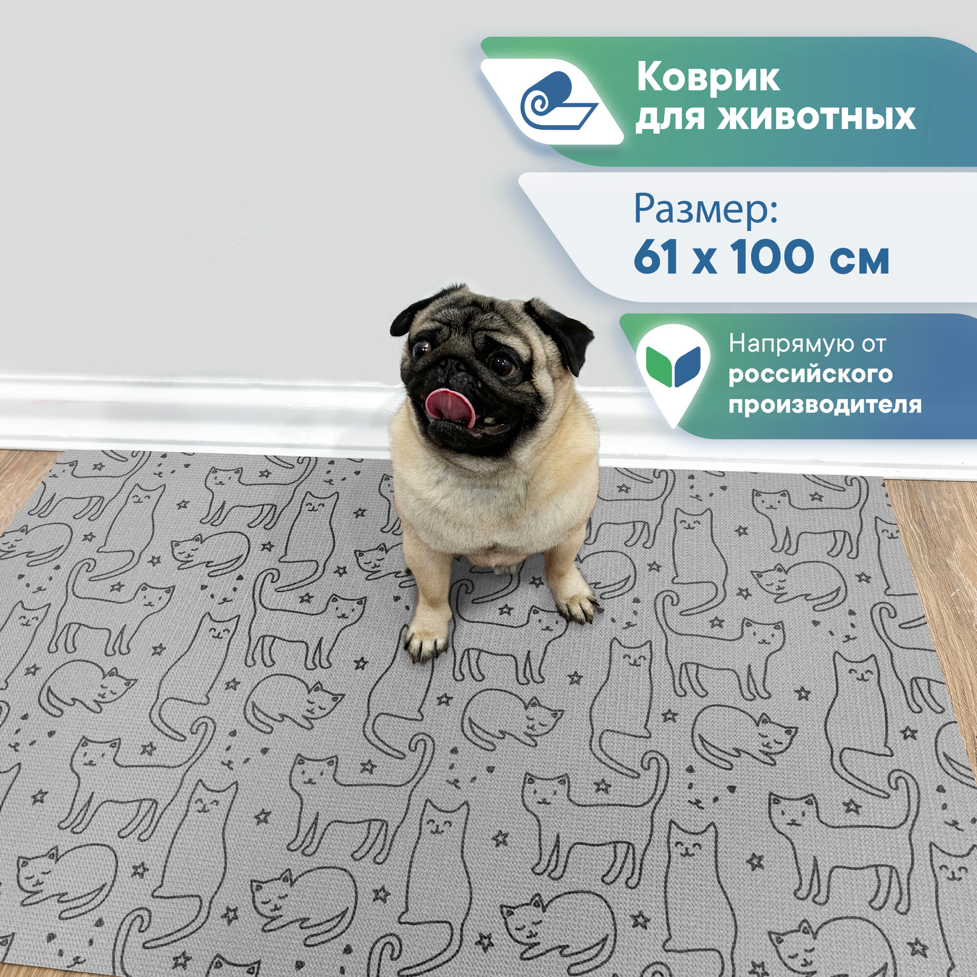 Отзывы на Коврик для животных под миску противоскользящий серый "Зооковрик" / коврик для кошек и собак 61х100 см кошки