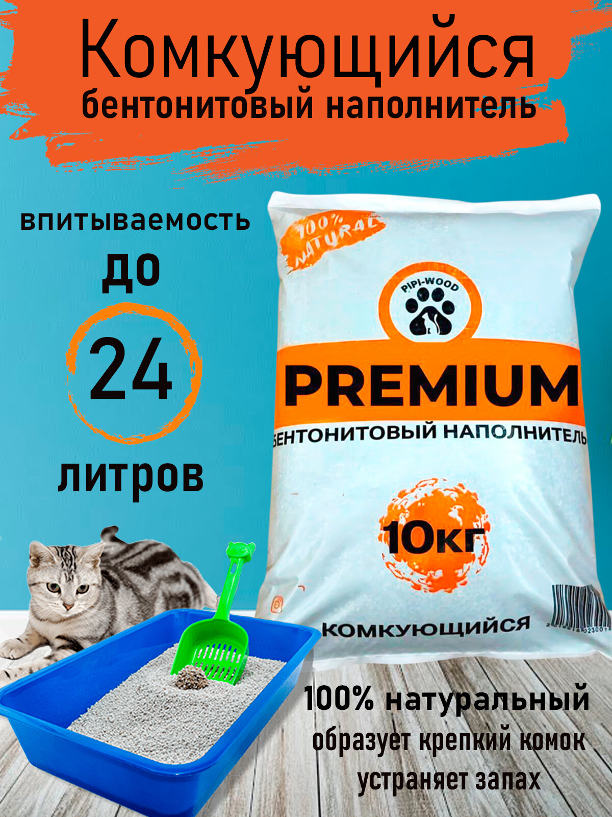 PiPi-WOOD / PREMIUM/Комкующийся/минеральный/ бентонит для кошачьего туалета 10 кг / Наполнитель для кошек бентонитовый информация:
