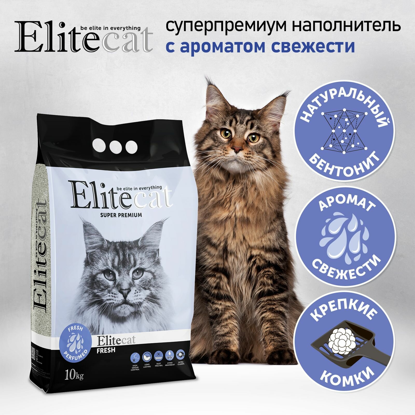 Наполнитель для кошачьего туалета комкующийся с ароматом свежести ELITECAT "Fresh", 11.4л / 10кг информация: