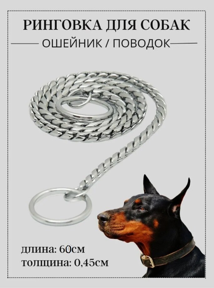 Ринговка для собак 60 х 0,45 см, цепочка-кобра рывковая, ошейник, цвет сталь 867 ₽