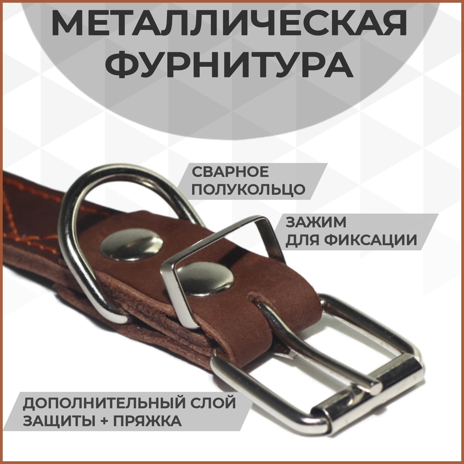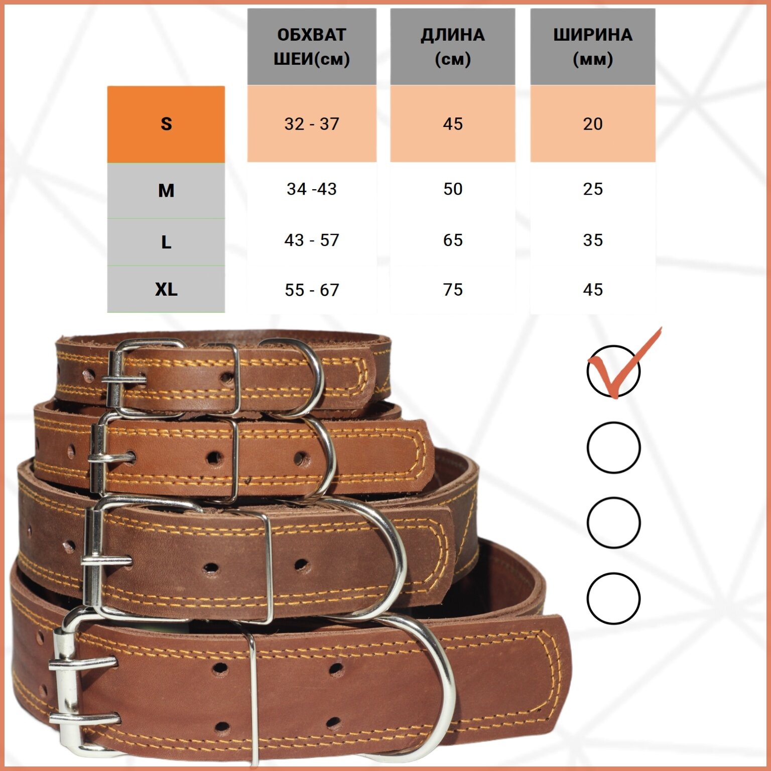 Ошейник кожаный для собак мелких и средних пород/ светло-коричневый/ S 45см /32-37 обхват информация: