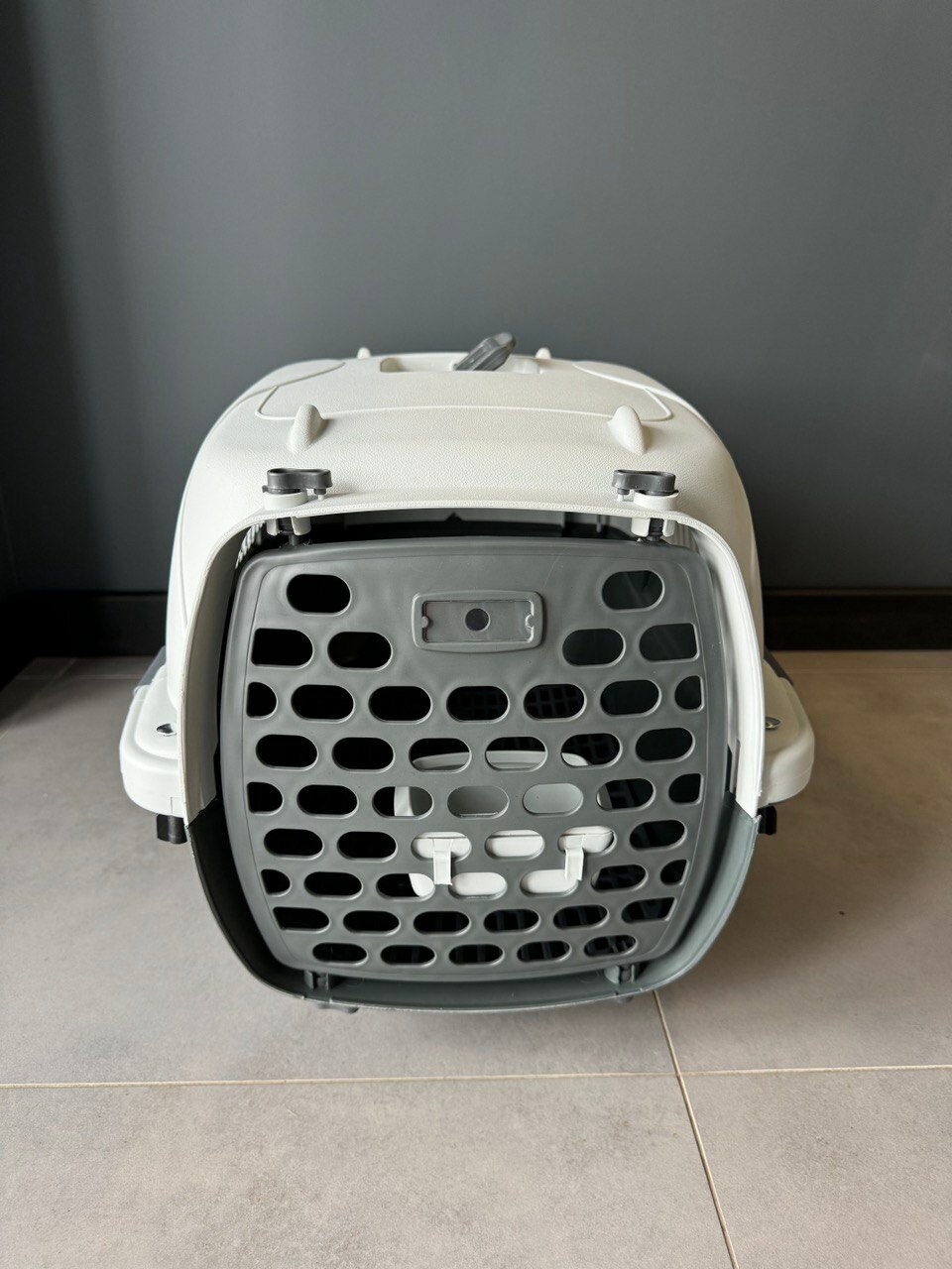 Отзывы на Переноска для кошек "Чистый Котик" с поилкой и сеткой серый, пластик 60x40x42,5 см