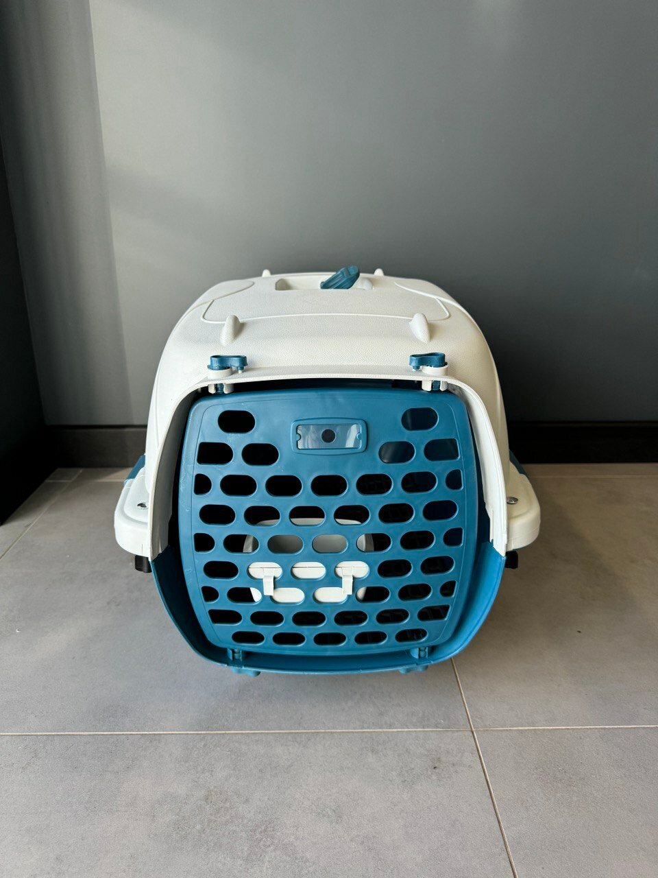 Отзывы на Переноска для кошек "Чистый Котик" с поилкой и сеткой синий, пластик 60x40x42,5 см