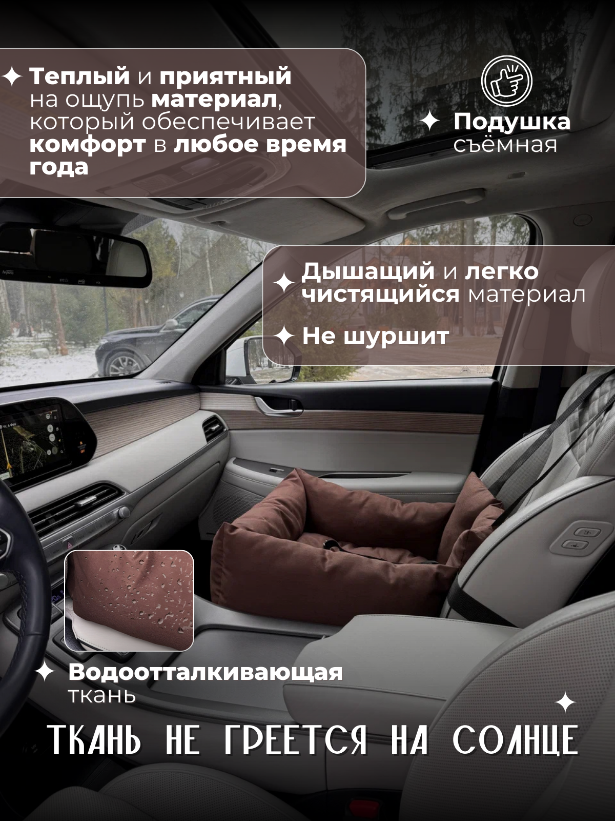 Автокресло для собак, Автокресло для животных Umkapets 55х50см коричневый информация: