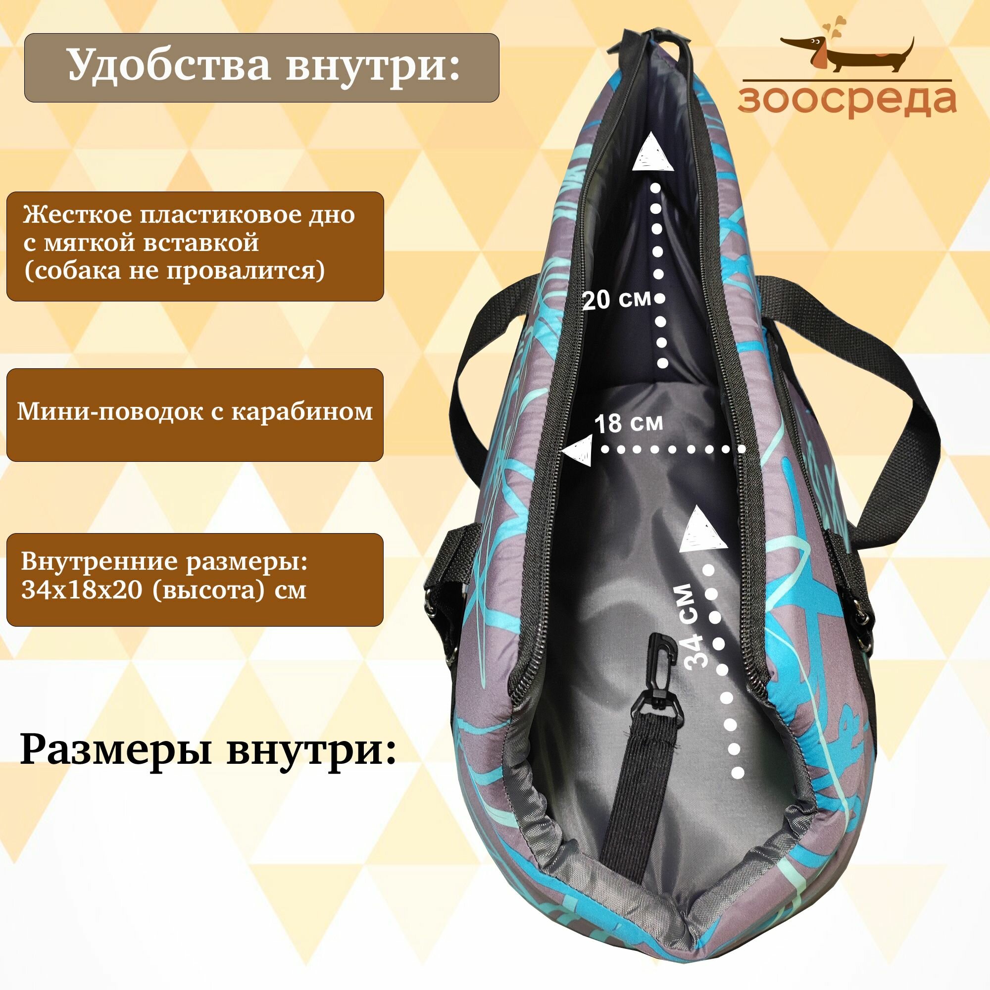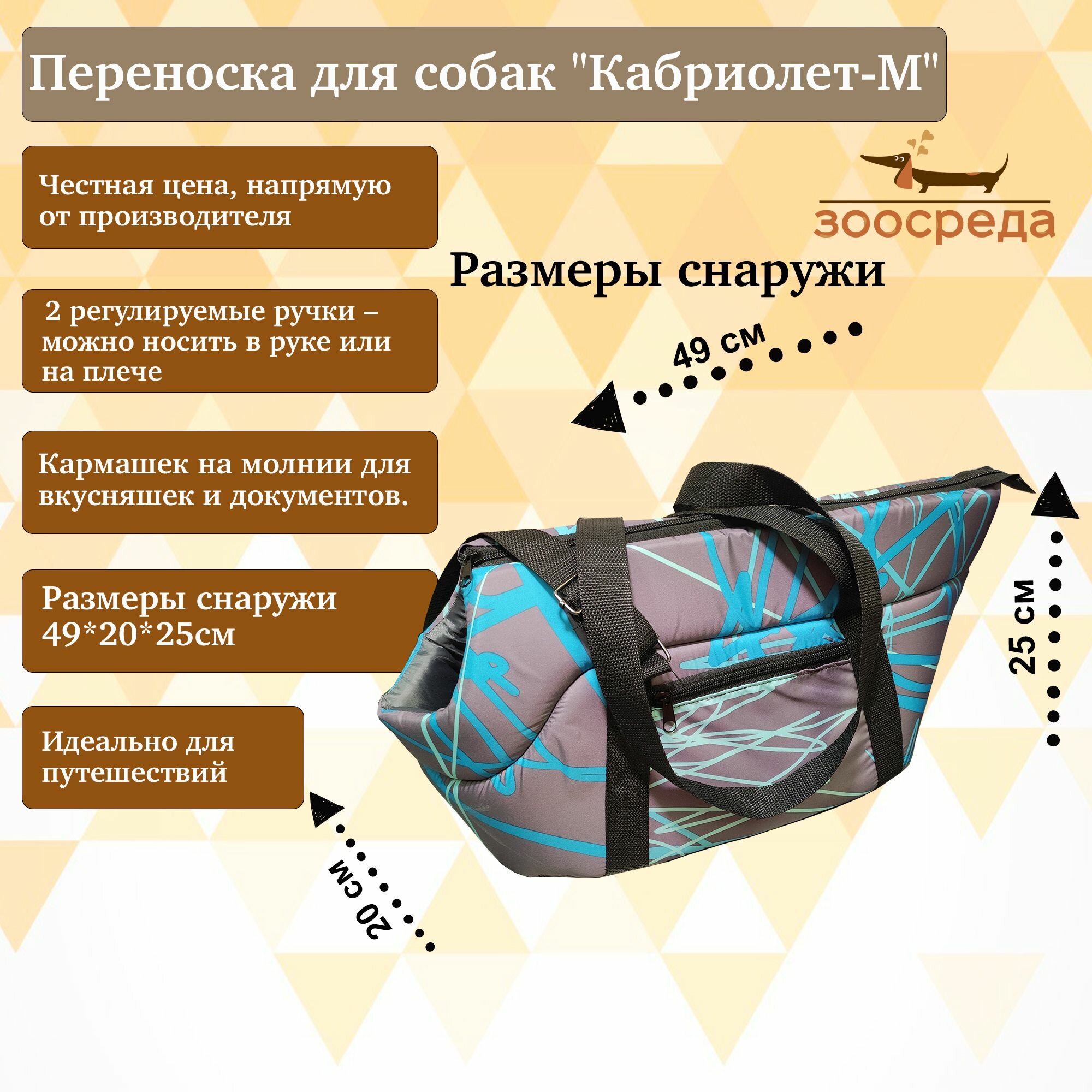 Переноска для собак "Кабриолет-М" с регулируемыми ручками и карманом, 49*20*25см, принт Геометрик, твёрдое вынимаемое дно 895 ₽