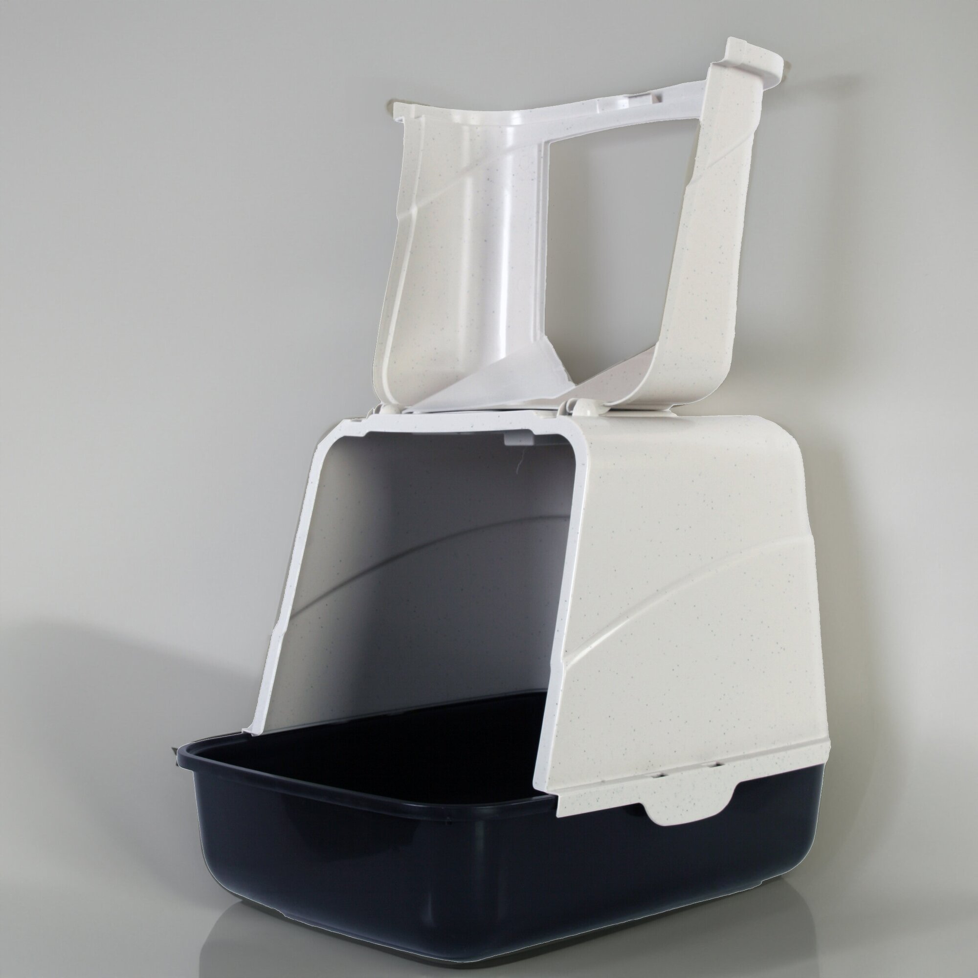 Закрытый лоток-туалет для кошек с откидной дверцей, угольным фильтром и совком "Чистый Котик" 50х40х41 см., серый
