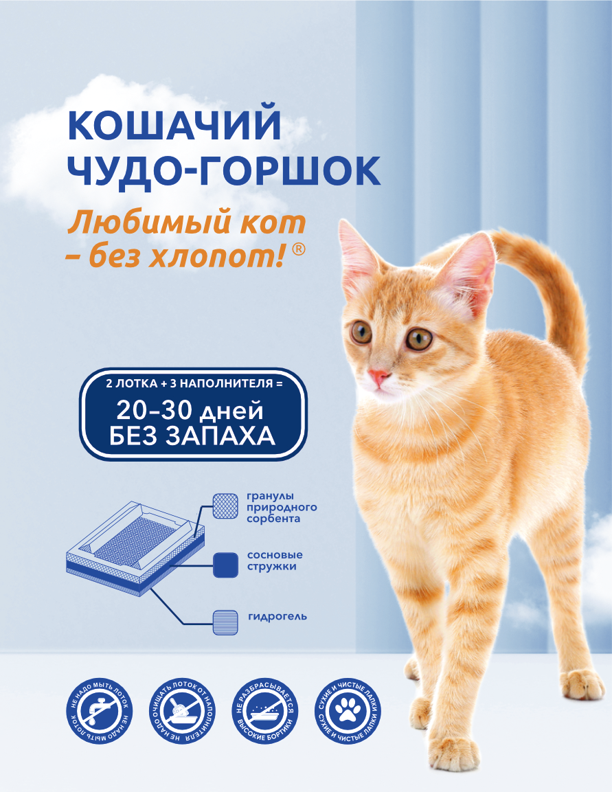 Кошачий Чудо-горшок "Любимый кот - без хлопот!" для котят и кошек весом до 4 кг (30*23*10см) информация: