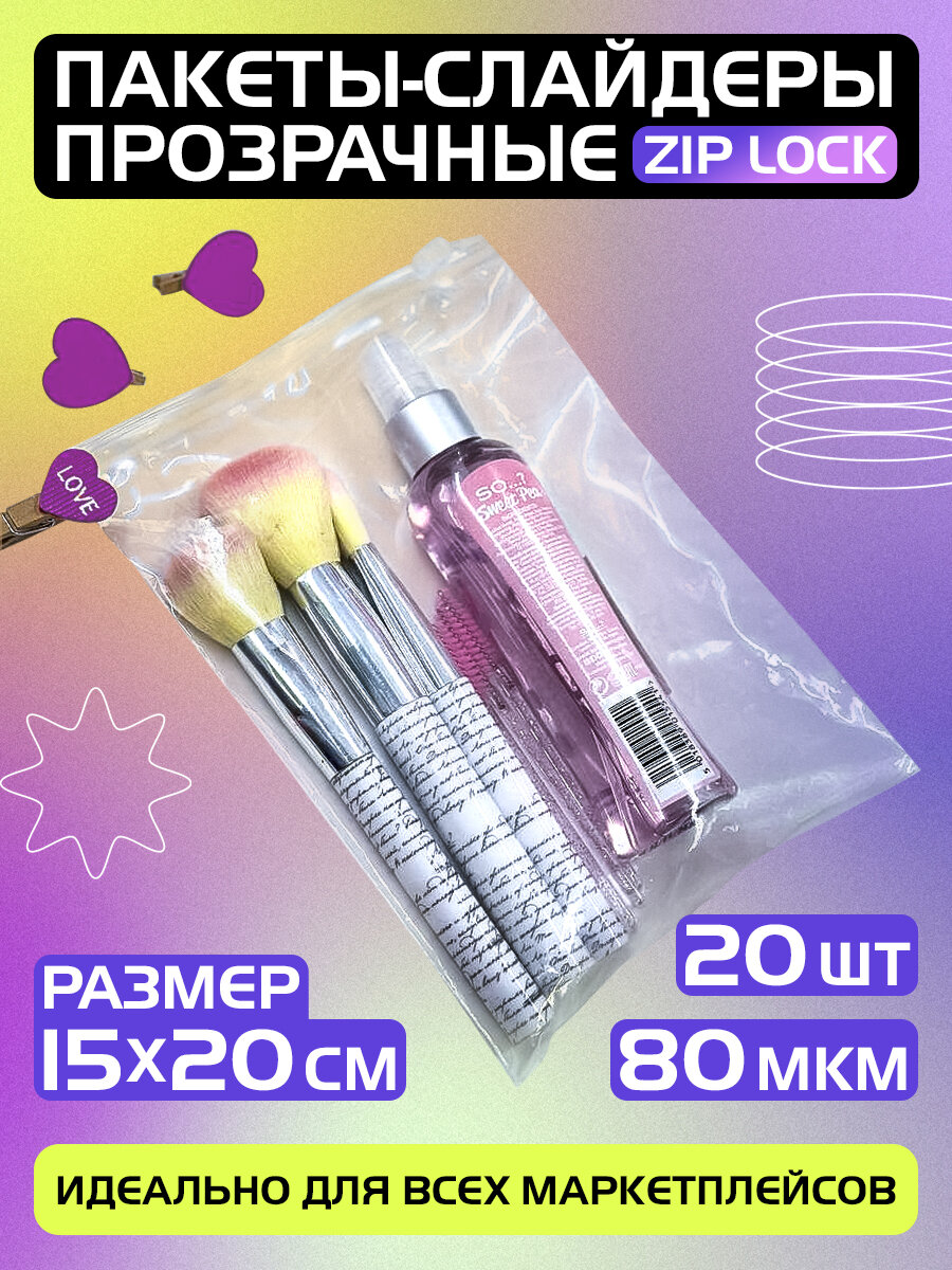 10 цен на Пакеты слайдеры прозрачные с Zip lock бегунком 15х20 см для хранения вещей и продуктов. Комплект 20 штук.