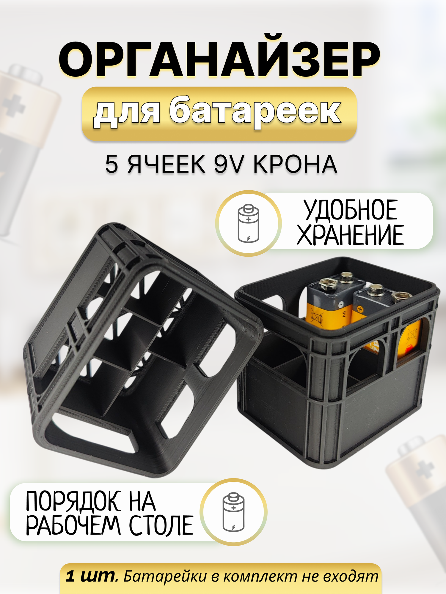 Органайзер для батареек на 5 ячеек формата 9V 6F22 6LR61 Крона контейнер информация: