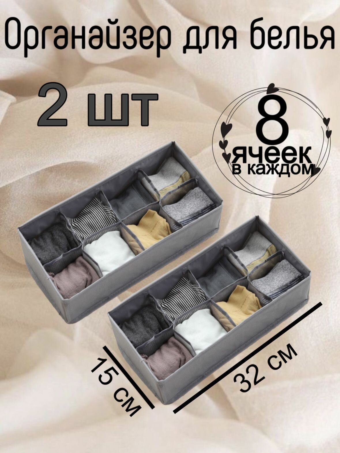 10 цен на Органайзер для хранения носков, нижнего белья (Серый 8 ячеек) 2 шт