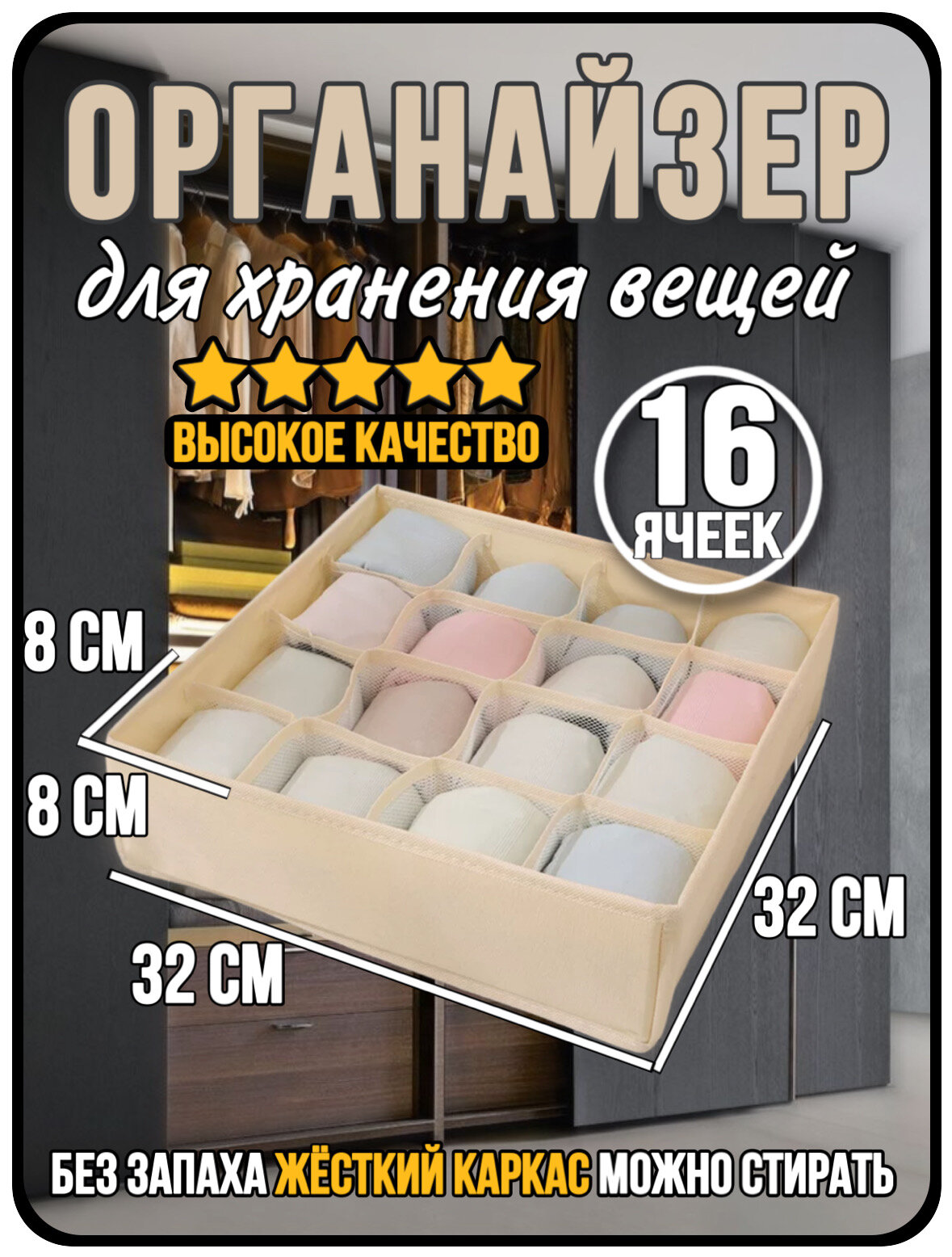 10 цен на Органайзер для хранения носков, нижнего белья (Белый 16 ячеек)