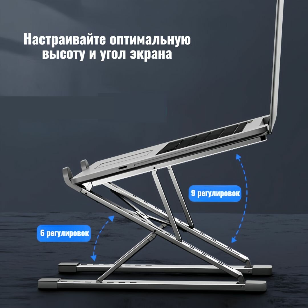 Подставка для ноутбука складная металлическая алюминиевая регулируемая по высоте информация: