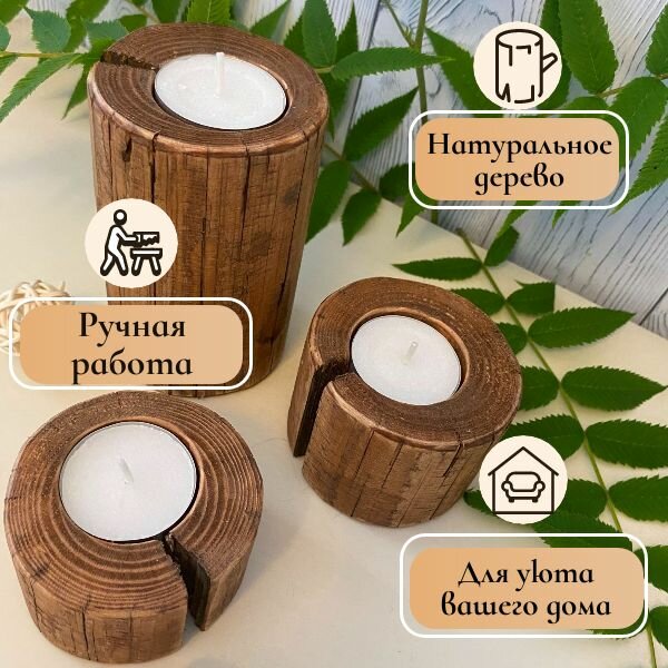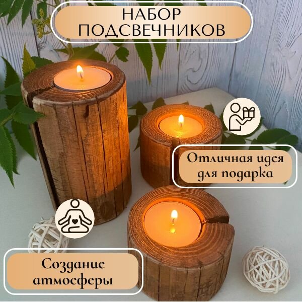 Набор деревянных подсвечников "Сосна",3 шт. информация: