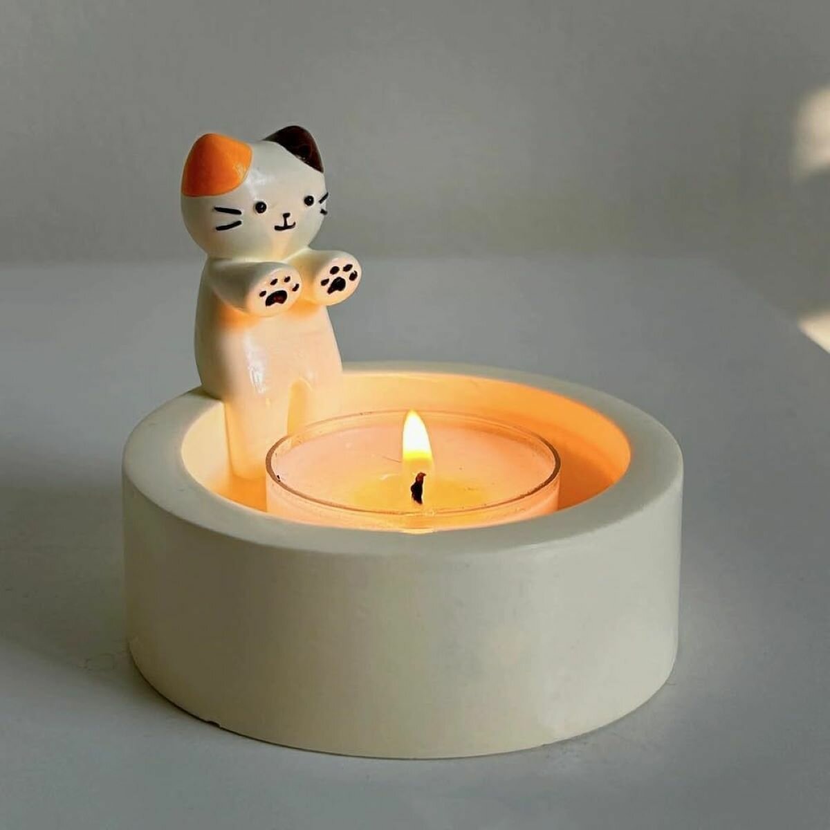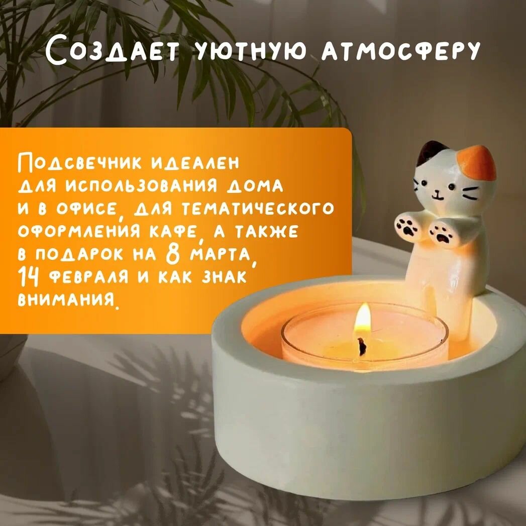 10 цен на Подсвечник "Молочно-рыжий кот" для чайных свечей