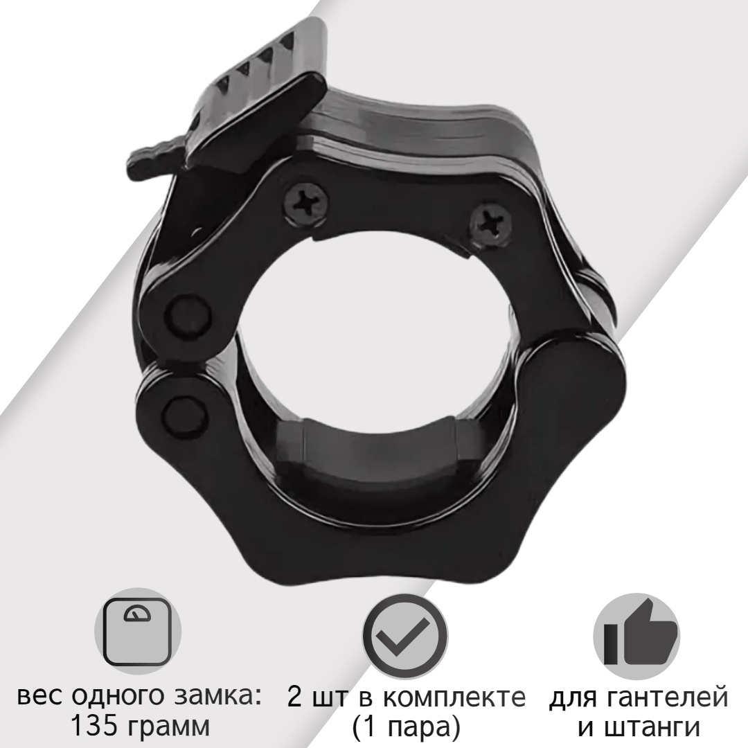 10 цен на Быстросъемные замки для олимпийского грифа d 50 мм с фиксатором STRONG BODY, черные, пара (олимпийские замки для дисков, зажимы для штанги)
