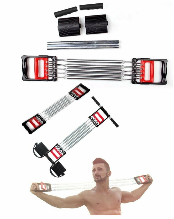 Эспандер (палка) Power Twister пружинный для фитнес тренировок грудных и плечевых мышц.