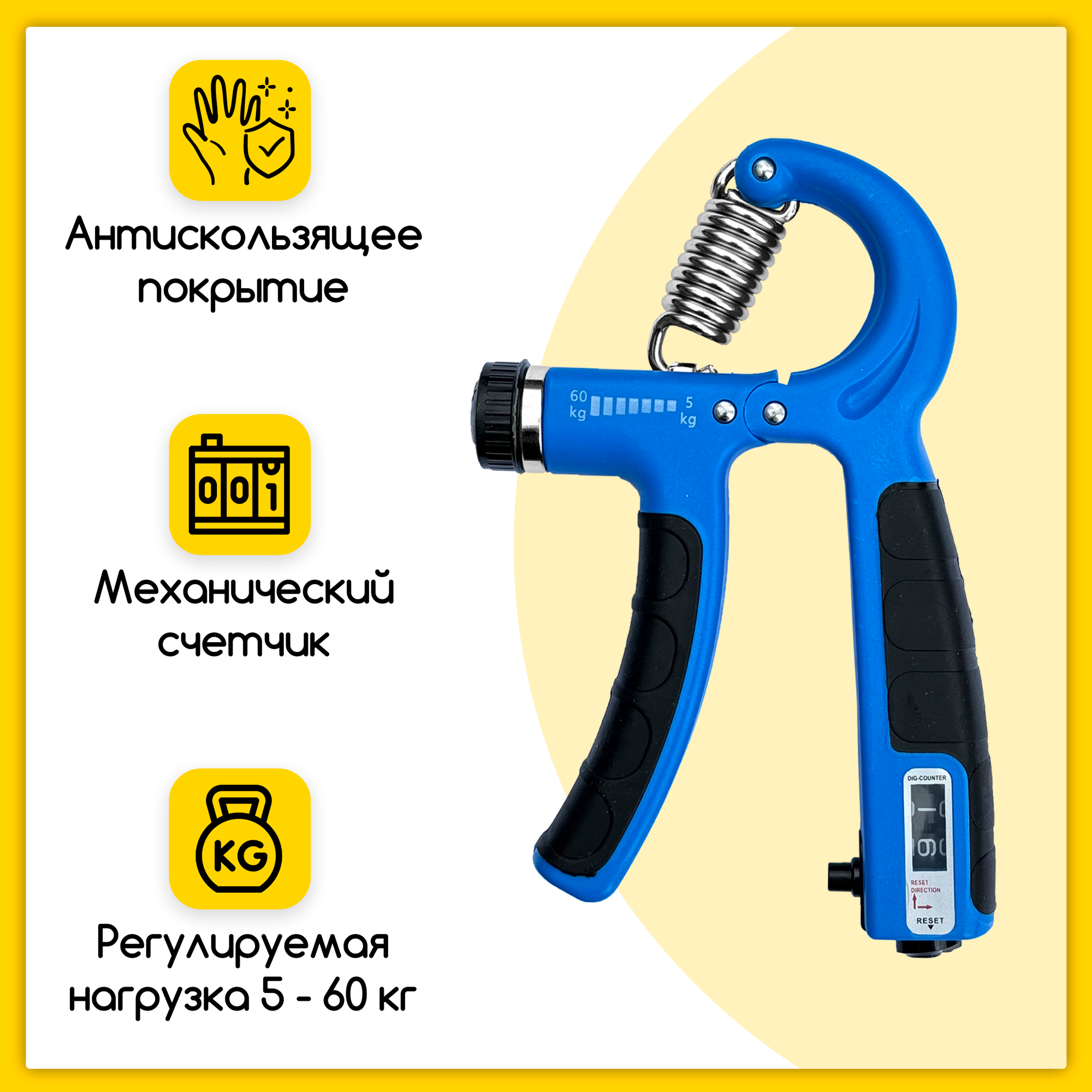 Отзывы на Регулируемый кистевой эспандер (пружинный), нагрузка 5-60 кг, черно-синий